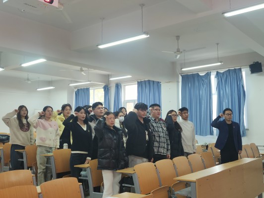 12月12日下午,学部党总支在第六教学楼301教室举行新党员入党宣誓仪式暨入党第一课。党总支纪律委员路英英,宣传委员刘斌,2024-2025-1学期19名新发展党员参加大会。
