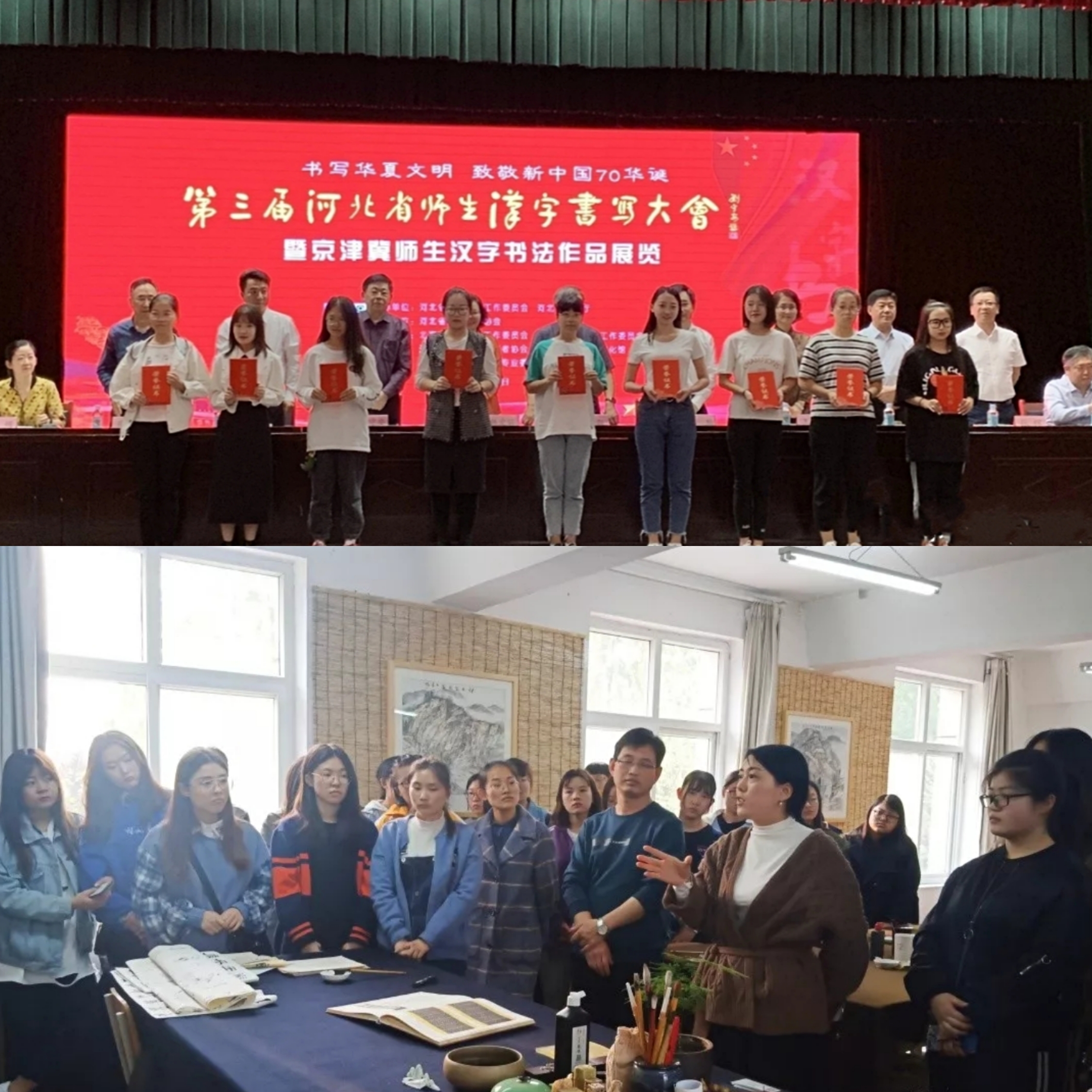 9月22日,由河北省语言文字工作委员会、河北省教育厅主办,河北省硬笔书法协会承办的“第三届河北省师生汉字书写大会暨京津冀师生书法作品展”在新华区文化馆隆重开幕。beat365官网学生在指导教师宗宏宇、王倩茹的指导下,共28人参加了本次大会,其中20人获奖。文学部汉语言文学专业崔文悦、于春洹分获毛笔硬笔一等奖,并参加颁奖典礼。文学部夏佳悦、冯舒月2名同学获得二等奖,王蕊、苏冰等7名同学荣获三等奖,郭子田、彭晓雨等6名同学荣获优秀奖,宗宏宇老师获得教师组二等奖。宗宏宇和王倩茹获得优秀指导教师奖。