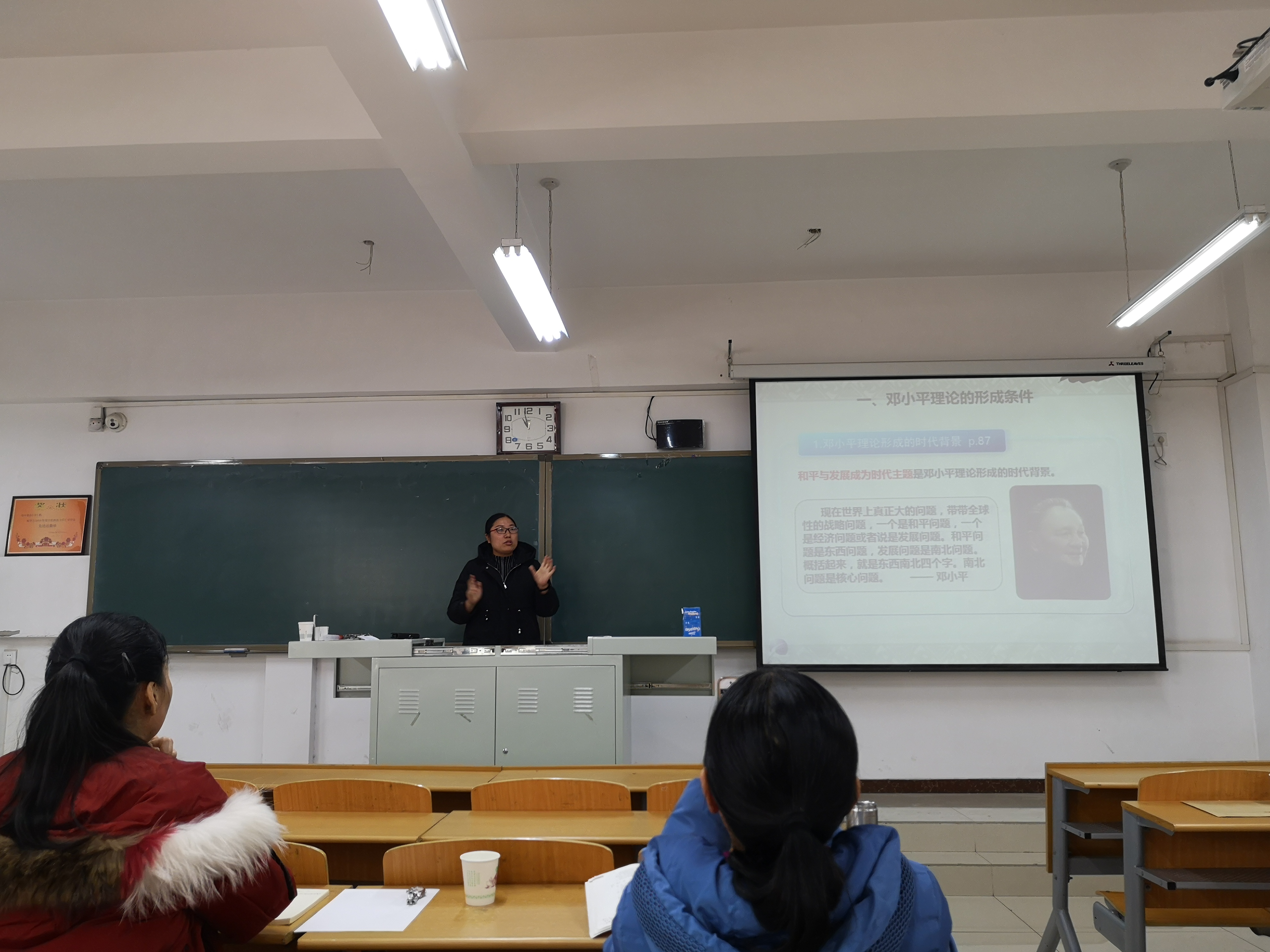 12月20日,教务处在第六教学楼502教室组织开展新任《毛泽东思想和中国特色社会主义理论体系概论》课兼职教师教学试讲。beat365英国官方网站马克思主义学院教研室主任王涛,教务处负责人,部分思政课教师以及试讲教师共同参加活动。
