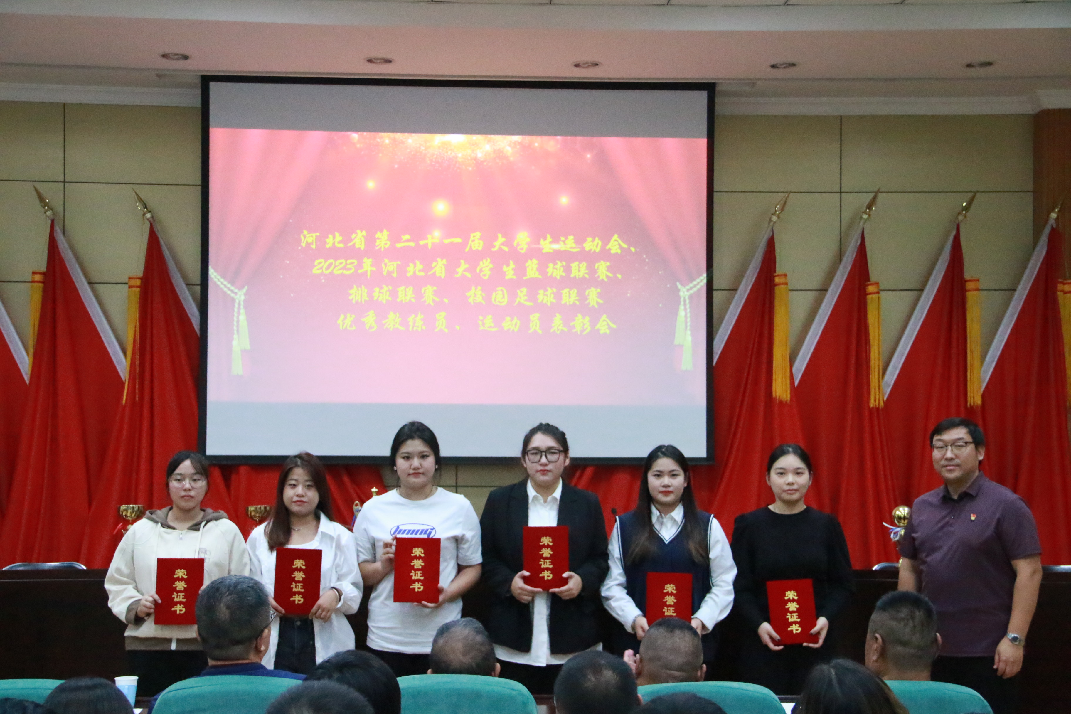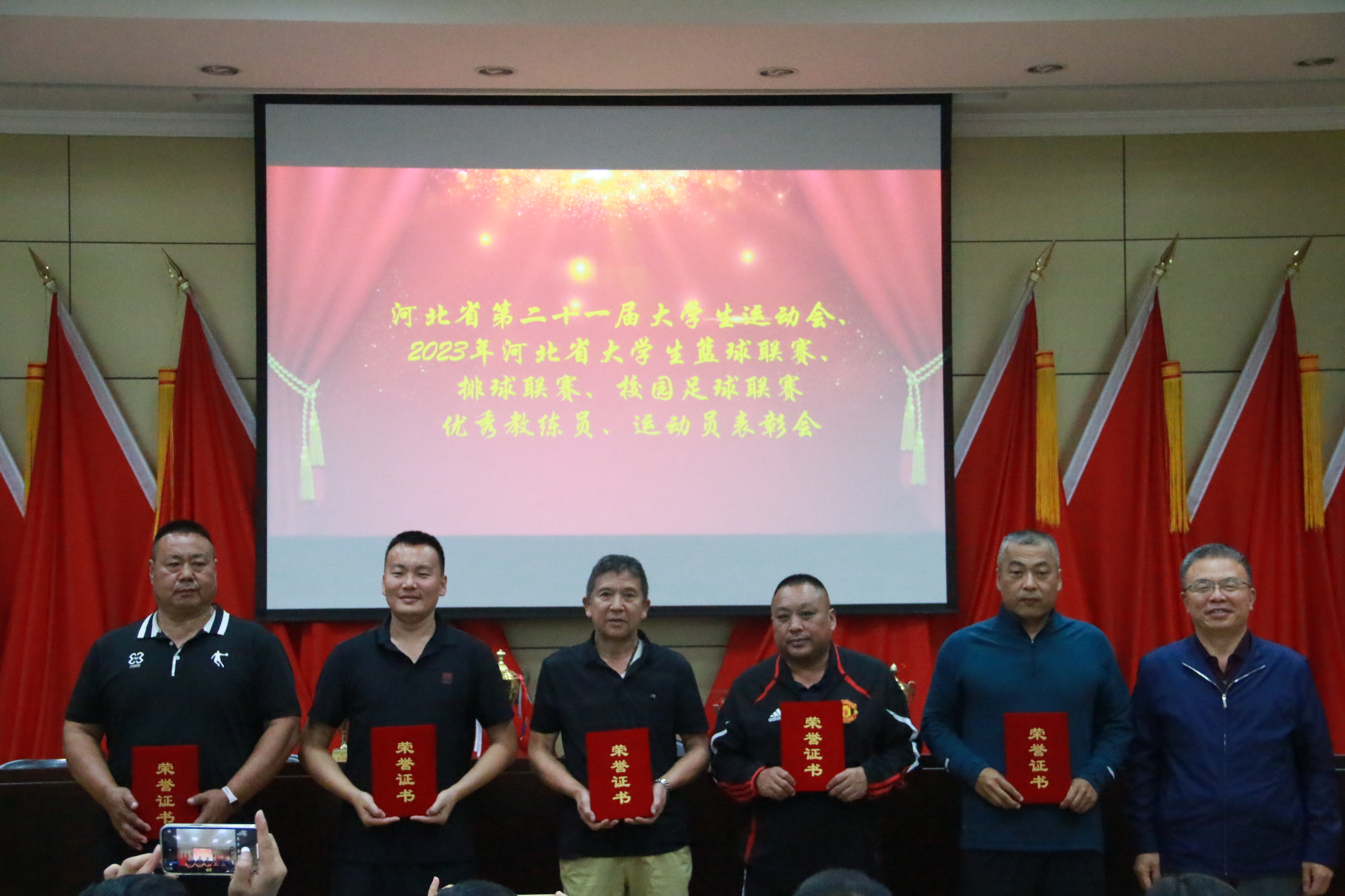 刘献军在会上宣读了《beat365英国官方网站关于表彰2023年河北省大学生运动会暨河北省足球联赛优秀教练员、运动员的决定》。徐国强、刘献军为受表彰的5名教练员和43名运动员颁发优秀教练员、优秀运动员荣誉证书。
