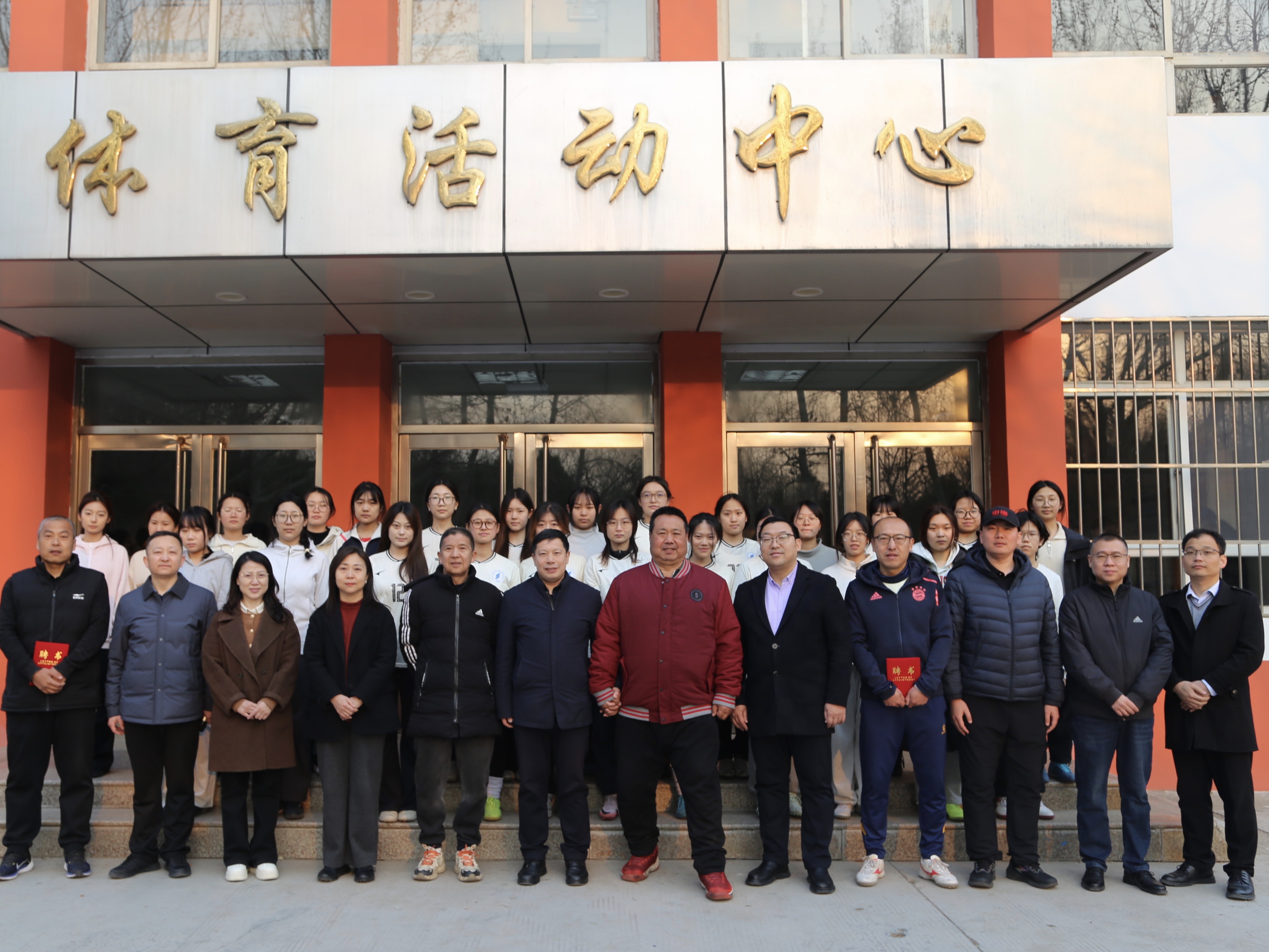 颁发聘书履新职,教练寄语新征程。杨富兴、黄文艳共同为各运动队教练颁发教练聘书,正式开启新赛季的执教篇章。随后,女排教练郑鹏、女篮教练赵红喜、田径队教练刘卫彬、赵龙以及女足教练戴立鑫分别发言,他们详细介绍了4支队伍的基本情况,并表示感谢学院的信任与支持,将在新的训练周期带领队员们努力训练,争创佳绩。