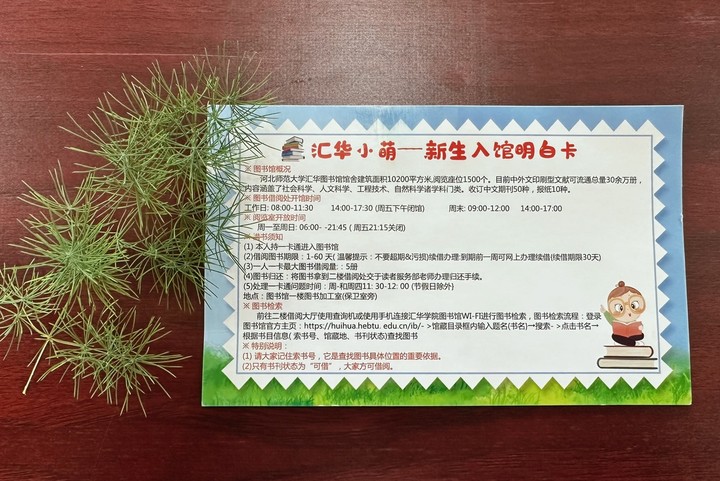 图书馆高度重视新生入馆教育工作,积极探索入馆教育新模式。开学伊始,老师们精心设计制作“汇华小萌—新生入馆明白卡”,帮助新生快速了解图书馆概况。培训期间老师们采取实地讲解的方式,围绕馆藏布局、图书借阅规则、图书馆规章制度、资源与创新服务等内容开展新生入馆教育。此外,图书馆志愿者分区域配合老师完成了对新生队伍的组织引导,并带领新生们观看图书馆宣传片及历年阅读文化节活动视频,引导新生熟悉图书馆的基本环境和功能布局,了解文明使用图书馆的注意事项,掌握图书查询机、借还书办理等操作流程。
