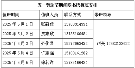 关于五一劳动节期间图书馆开放安排的通知