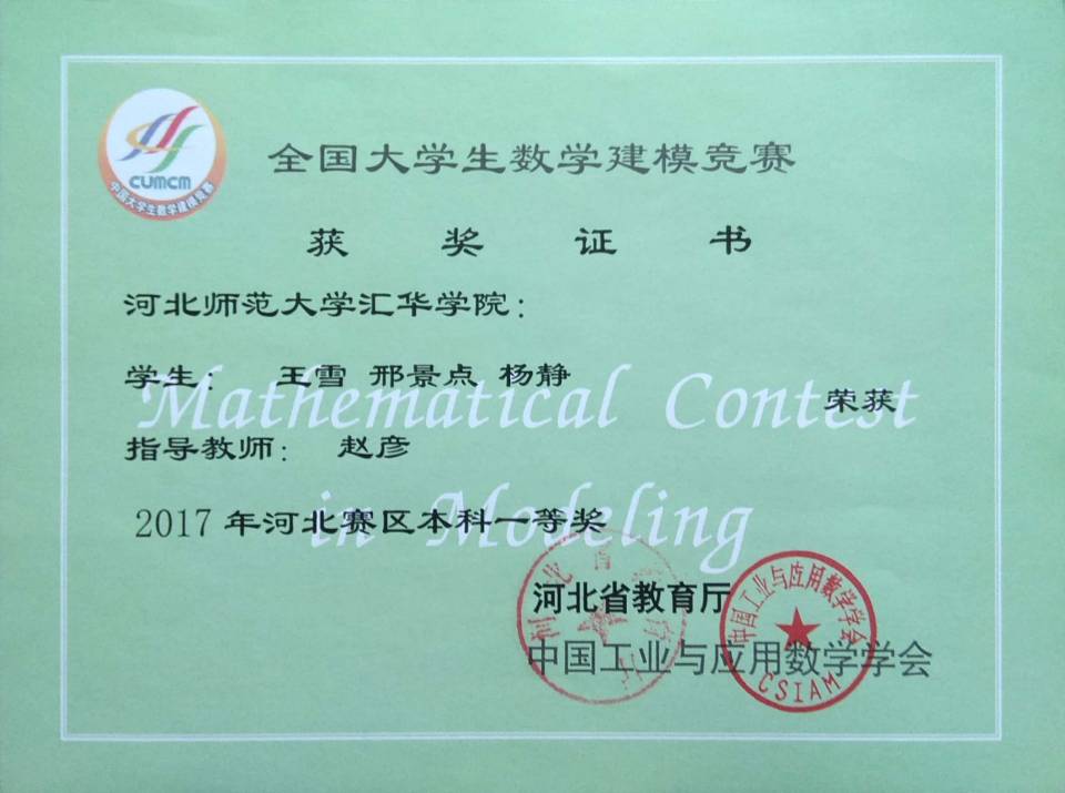数学与应用数学专业高度重视人才培养质量,教学管理严格,在强化专业培养的同时,注重学生综合素质的全面发展,学生在全国大学生数学竞赛、全国大学生数学建模竞赛、河北省大学生数学竞赛等专业赛事中均获得优异成绩。