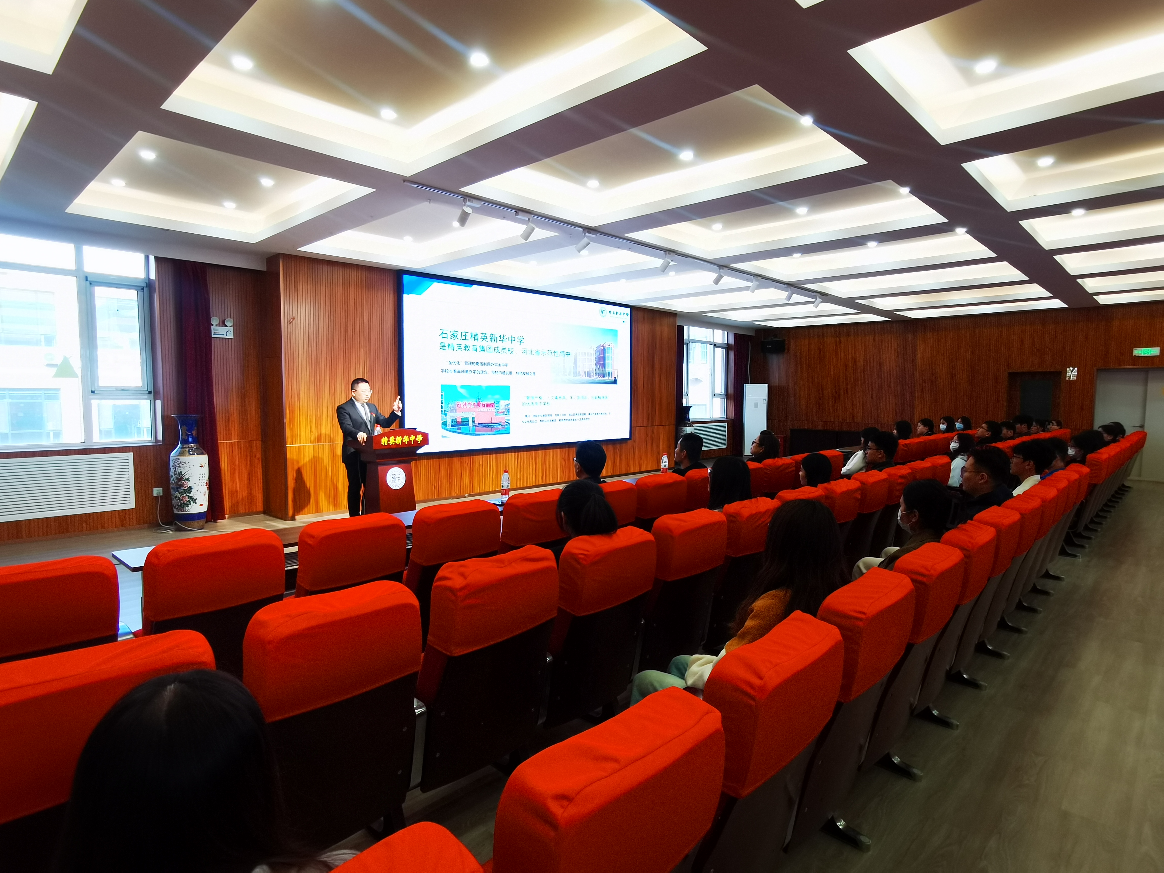 3月21日,王薇、张娜以及理学部毕业班师生40余人专车组队来到石家庄精英新华中学,在访企拓岗基础上送生上门,帮助毕业生“扶上马,送一程”,提供全方位就业服务,畅通双向选择渠道。毕业生们在校园参观环节,直观了解校园文化及软硬件设施;在座谈交流环节,向在职在岗的学姐学长们了解师资培养路径及人才发展规划。最后,学生们纷纷投递手中简历,主动出击,积极就业。