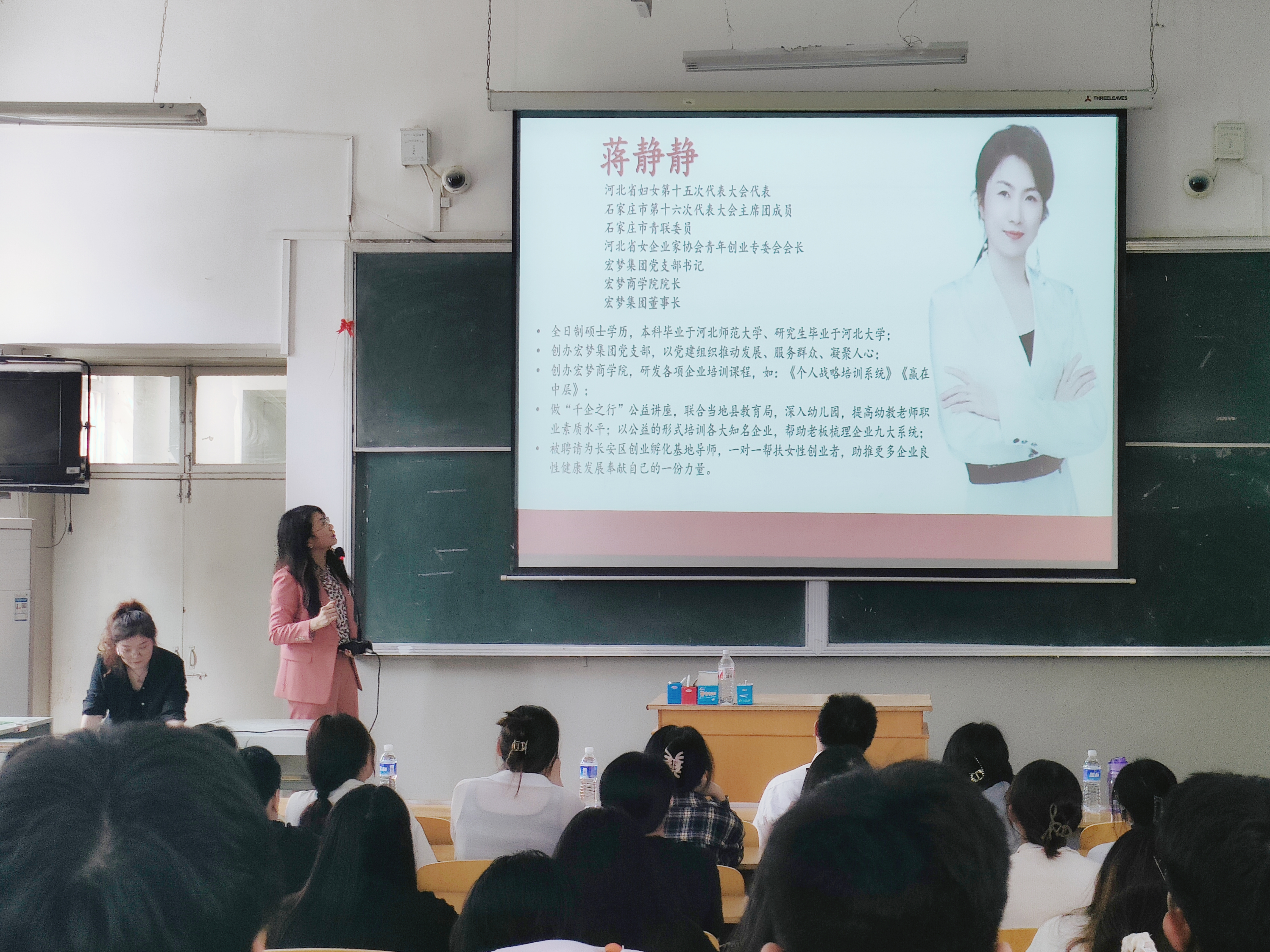 最后,王薇向同学们介绍了学部往届毕业生就业情况,为同学们注入“强心剂”:言前定则不跲,事前定则不困。新时期,作为汇华学子与时代接轨,做好职业生涯规划,才能找准坐标、选准方位,才能在新的赛道上把握住机遇,勇立潮头。 蒋静静,2010届化学专业毕业生,河北省妇女第十五次代表大会代表、石家庄市第十六次代表大会主席团成员,现任宏梦集团董事长、党支部书记。她在宏梦集团创立和发展过程中不断回馈母校,吸收了很多汇华各专业优秀毕业生。 刘喆,2011届化学专业毕业生,现任宏梦集团教育事业部总裁、宏梦商学院院长。