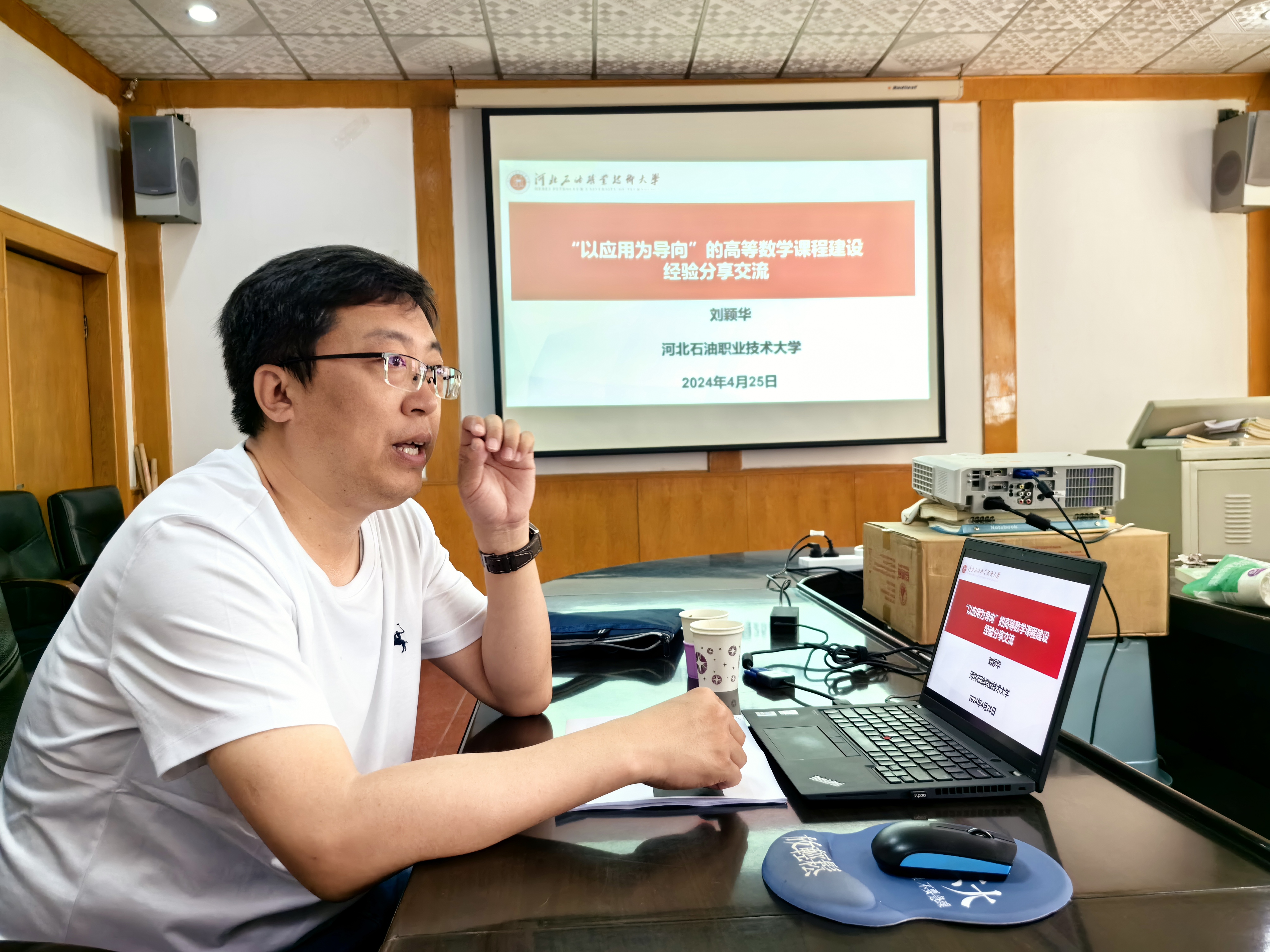 4月26日上午,beat365官网数理教研室教学研讨培训在第二教学楼201会议室举行。活动邀请河北石油职业技术大学数理部主任刘颖华作了题为《以应用为导向,学数学用数学》的报告,并进行了高等数学课程建设经验交流,学院副书记副院长刘献军及《高等数学》课程的任课教师参加,理学部部长王薇主持。
