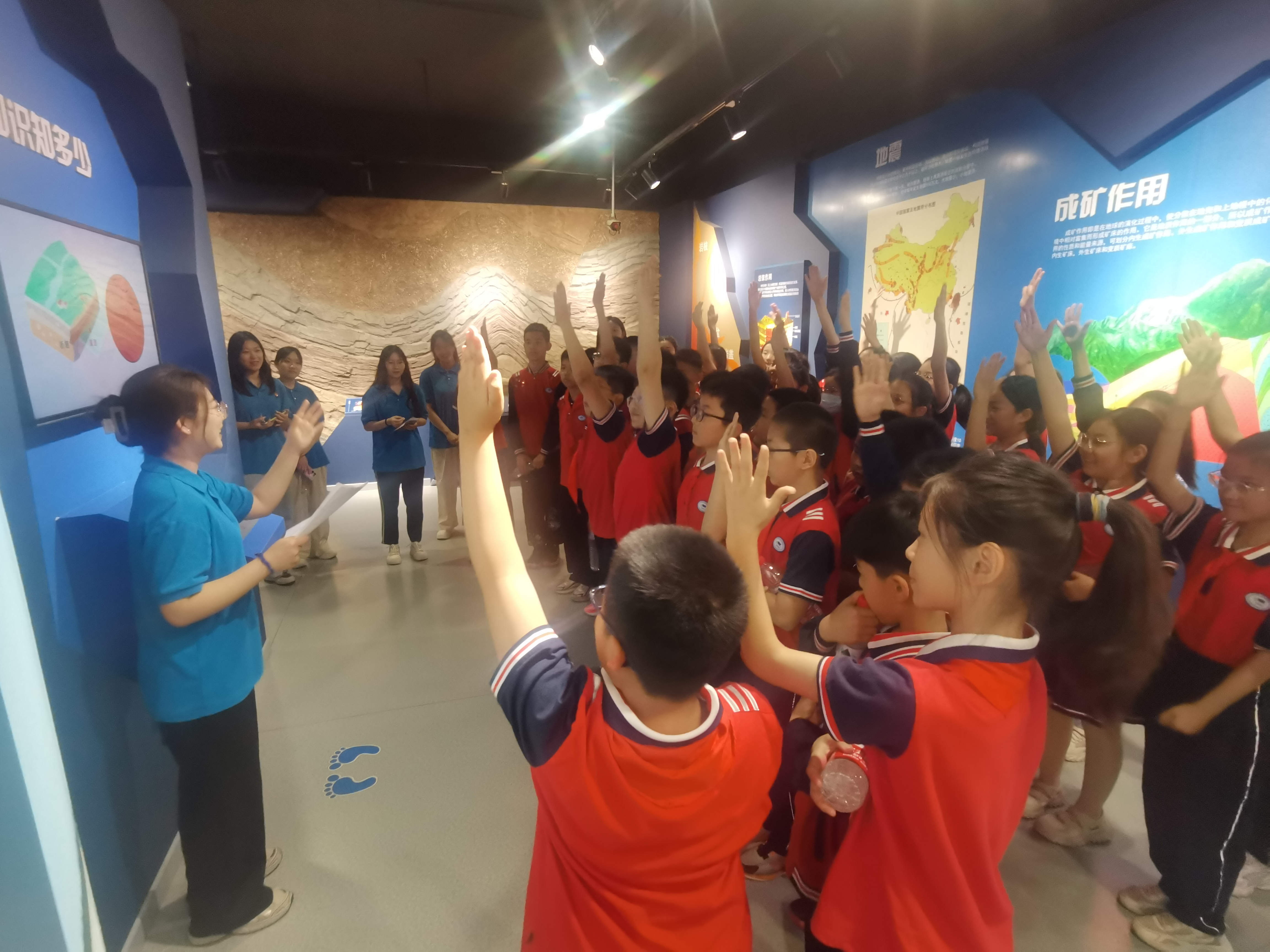 在校外探秘活动中,地理科学专业志愿者们带领石家庄市桥西区汇华小学部分师生及学生家长走进河北省地质博物馆,在地球厅地震板块,利用馆内展品和地震模拟3D体验设备开展防震教育活动;之后,通过防灾减灾知识宣传、逃生常识科普、防灾减灾知识竞赛和互动游戏等让小学生们巩固当天所学的科普知识。