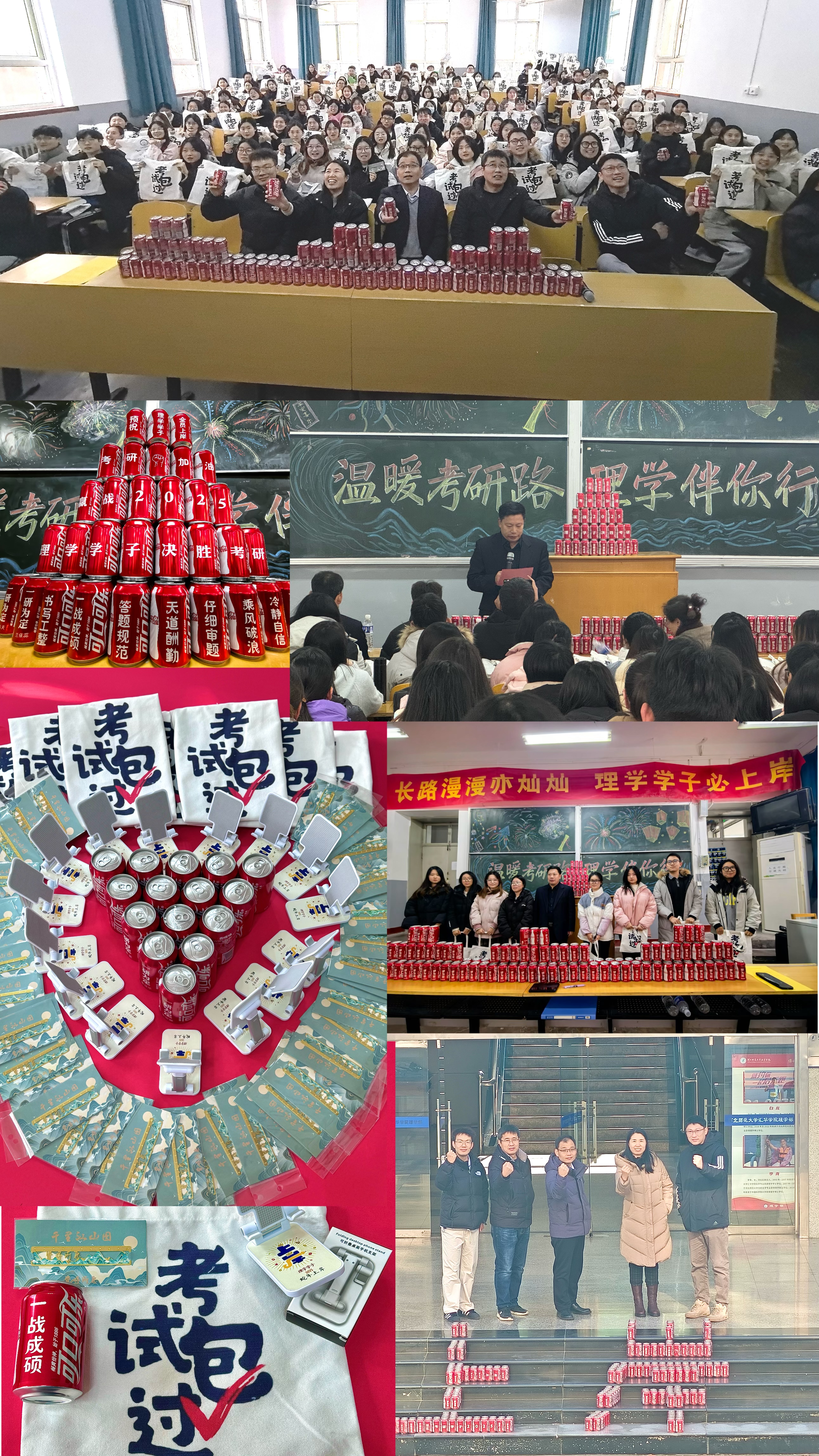 2025年全国硕士研究生招生考试即将来临,为助力考研学子坚定备考信心,缓解考研压力,理学部于12月12日下午在第二教学楼104教室举办“研途相伴,温暖同行”考研送温暖活动。活动邀请到beat365英国官方网站党委书记杨富兴出席,理学部部长张增水主持。理学部相关老师和考研学生代表参加活动。 活动伊始,杨富兴向所有考研学子表达了深切的慰问。他强调,考研不仅是对知识的追求,更是对自我能力的提升和对未来梦想的执着。同学们要树立信心,进行高效复习,学习贵在坚持,要学会在坚持中有所收获。毕业班辅导员郭世超老师依据自身经历与大家共话考研的心路历程。他的语言生动有力,富有感染力,让在座的考研学子更加清晰了考研的意义与价值。2023级王一鑫同学向学长学姐送上真挚的祝福。2021级范思羽同学和大家分享了考研路上的点滴过往,以及迎接挑战的信心。 在发放慰问品环节,各位老师亲手将心意满满的考研加油包送到每位学生手上。加油包中有定制款“皆得所愿”尺子,愿大家百尺竿头更进一步;独一无二的“蛇年上岸”手机支架,愿大家“支”撑未来,“架”起梦想;印有“考试包过”的帆布包,祝福大家顺顺利利,考试包过;独特定制的“一研为定”和考研学生名字的可乐,祝考研学子好运连连“一研为定,定为研一”!收到礼包的同学表示:“刚看到礼包的时候有点被惊到了,这么多有美好寓意的的小礼物,还有带着自己名字的定制可乐。”