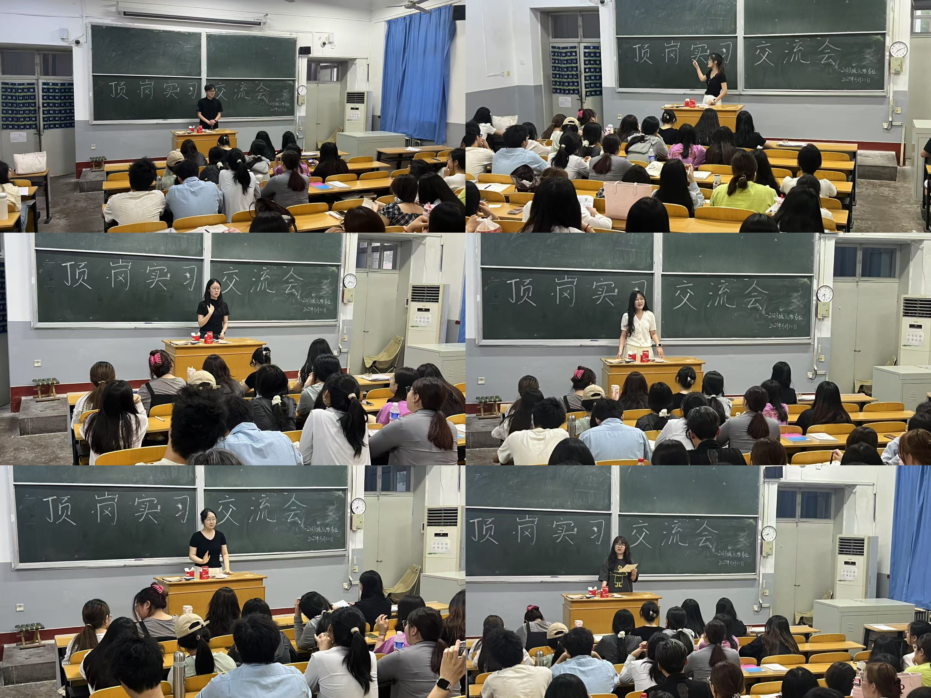青蓝相继传薪火,经验共融启新程。顶岗实习不仅是学生打磨教学本领、提升教学能力的关键阶段,更是明确职业规划、探索就业方向、提升专业技能的重要途径。为贯彻落实党的二十大精神,帮助学生从容迎接顶岗实习挑战,辅导员林建丽老师带领2023级化学专业全体成员于5月20日晚七点在第二教学楼204教室与大三学长学姐们一起举办了顶岗实习朋辈交流活动。经验丰富的学长学姐倾囊相授,以真挚话语与实用建议,为学弟学妹点亮实习之路的明灯。