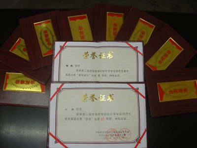 >> 第二届全国高等院校化学专业师范生教学素质大赛获奖证书
