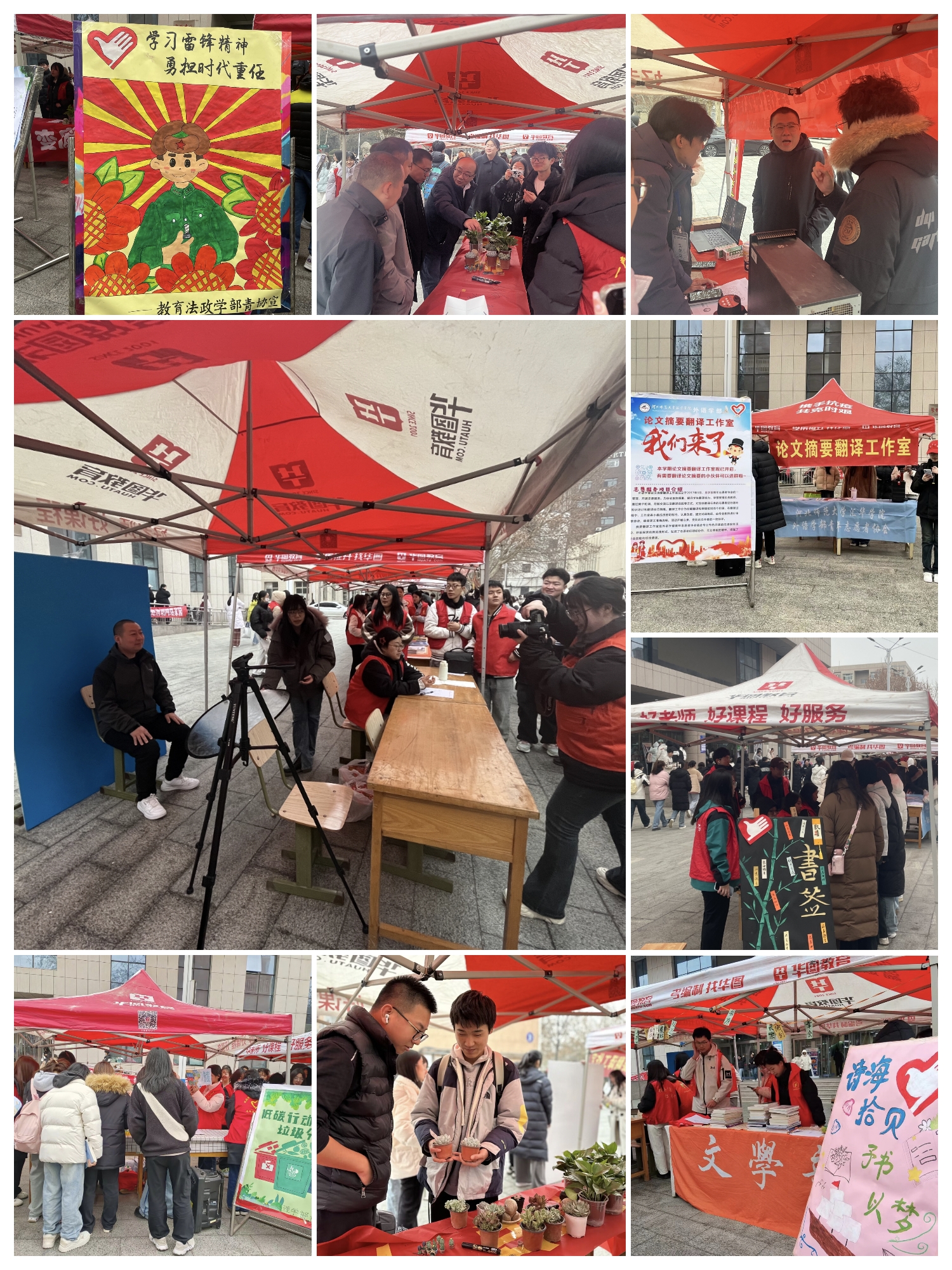 各学部青年志愿者依托专业优势,开展了形式多样的学雷锋志愿服务展示活动。工学部开展了“电脑小分队志愿服务”现场为师生维修电脑;理学部举办了“垃圾分类知识进校园”的科普志愿服务;文学部开展了“诗海拾贝,予书以梦”为主题的旧书换书签志愿服务活动;传媒学部举办了“最美证件照”志愿服务活动,为到场师生拍摄证件照;教育法政学部举办了“雷锋精神宣传和手工小物件制作”志愿服务活动;经济管理学部开展了“以废换绿”的绿色环保科普活动;外语学部论文摘要工作室现场为到场师生翻译论文摘要;艺术学部开展了以“弘扬雷锋精神·争做时代新人”为主题的手机书签现场书写展示活动。