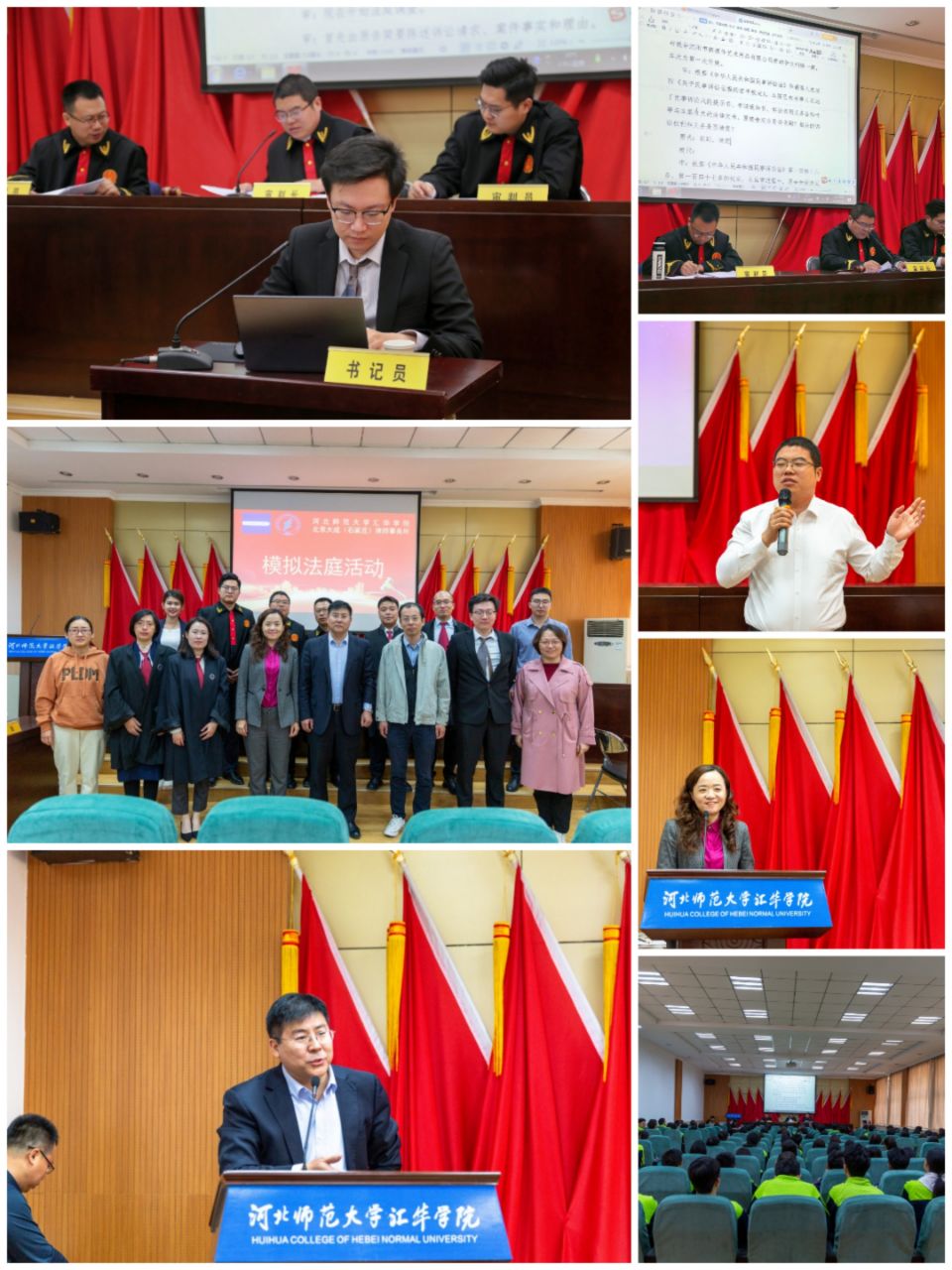 4月11日,beat365英国官方网站联合北京大成(石家庄)律师事务所在图书馆报告厅成功举办模拟法庭活动。本次活动中,精英律师团为法政学部法学专业160余名学生重现了真实法庭场景,学生们认真观摩,积极参与讨论。