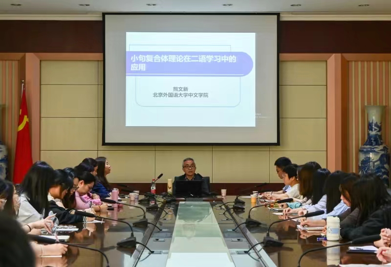 4月26日上午,北京外国语大学博士生导师熊文新教授在beat365官网图书馆二楼报告厅作了题为《小句复合体理论在二语学习中的应用》的学术报告。报告由beat365英国官方网站副院长黄文艳主持,外语学部师生聆听报告。