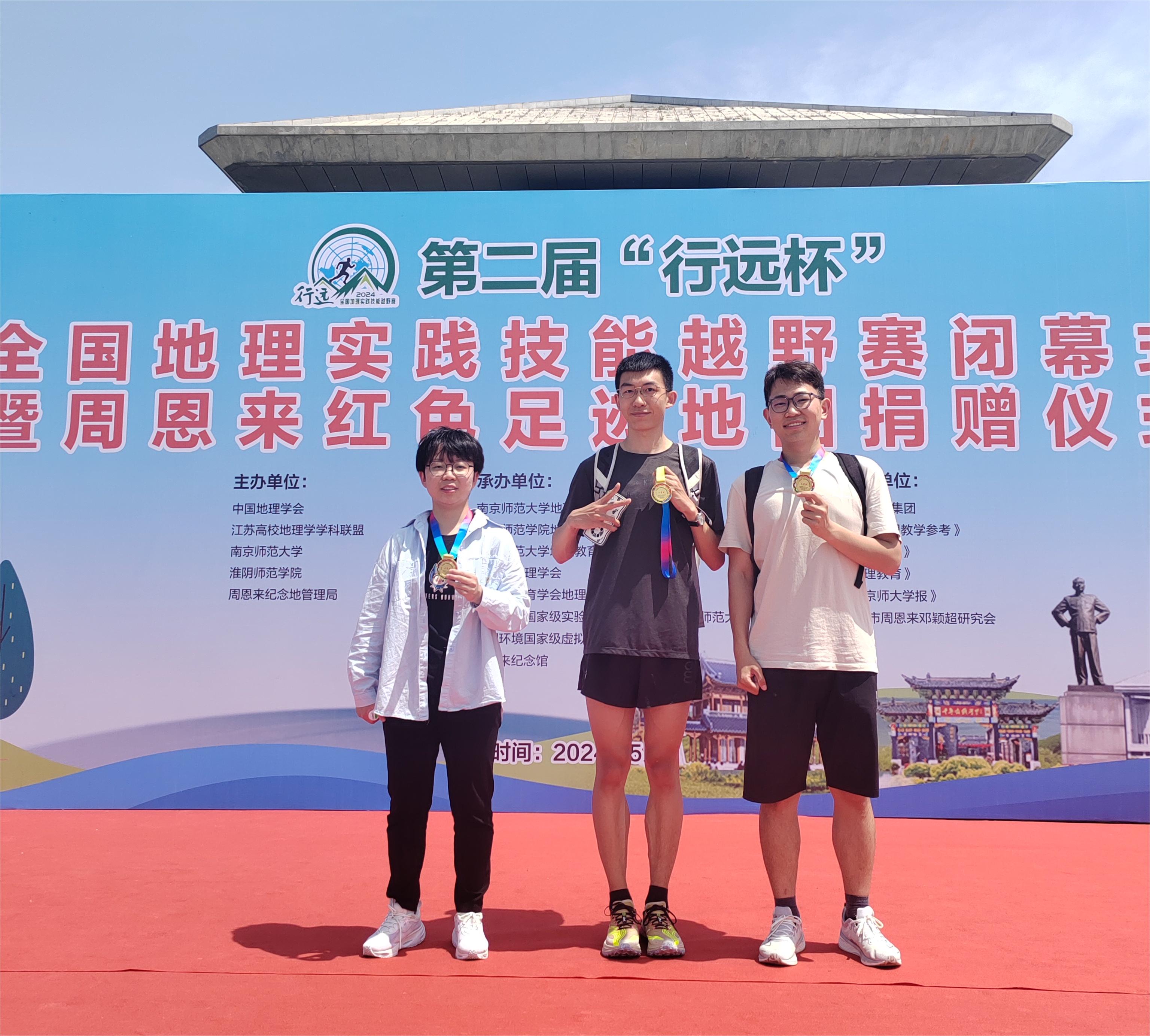 5月18日,在江苏淮安举行的第二届“行远杯”全国地理实践技能越野赛中,理学部地理科学专业2021级李政念、2020级李思涵、2021级丁忠艺三位同学分别荣获一、二、三等奖,展现了出色的专业素质、卓越的实践技能和极佳的应变能力。