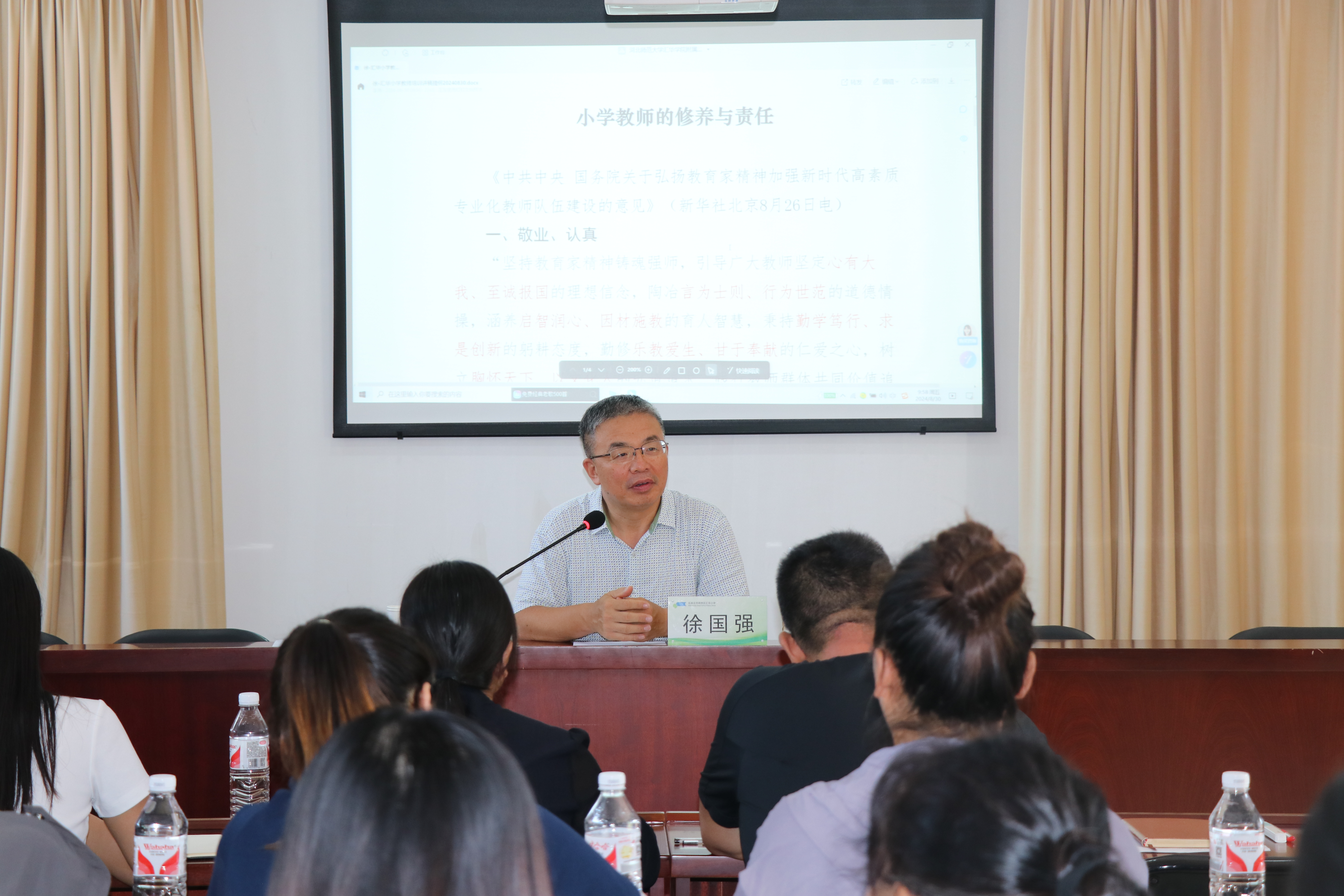 8月30日上午,院长徐国强应邀来到汇华小学,为该校教师作了题为“小学教师的修养与责任”的专题报告。