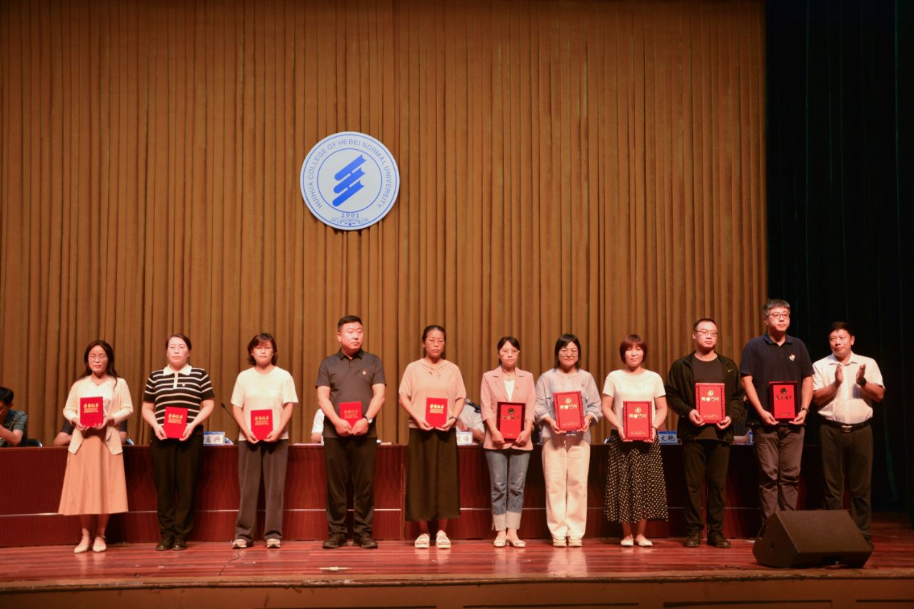 与会领导分别给先进基层党组织、校园安全先进集体、院龄满二十年和院龄满十年教职工、先进工作者、师德考核优秀教职工、优秀共产党员、优秀党务工作者、教学优秀奖获奖教师、教师教学创新比赛获奖教师、课程思政教学竞赛获奖教师以及辅导员职业素质大赛获奖者、校园安全先进个人颁发了荣誉证书。大会表彰了院级先进集体8个、先进个人 227人次。