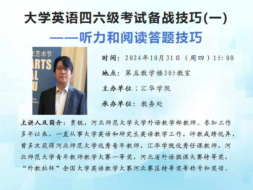 讲座题目:大学英语四六级考试备战技巧(一)——听力和阅读答题技巧