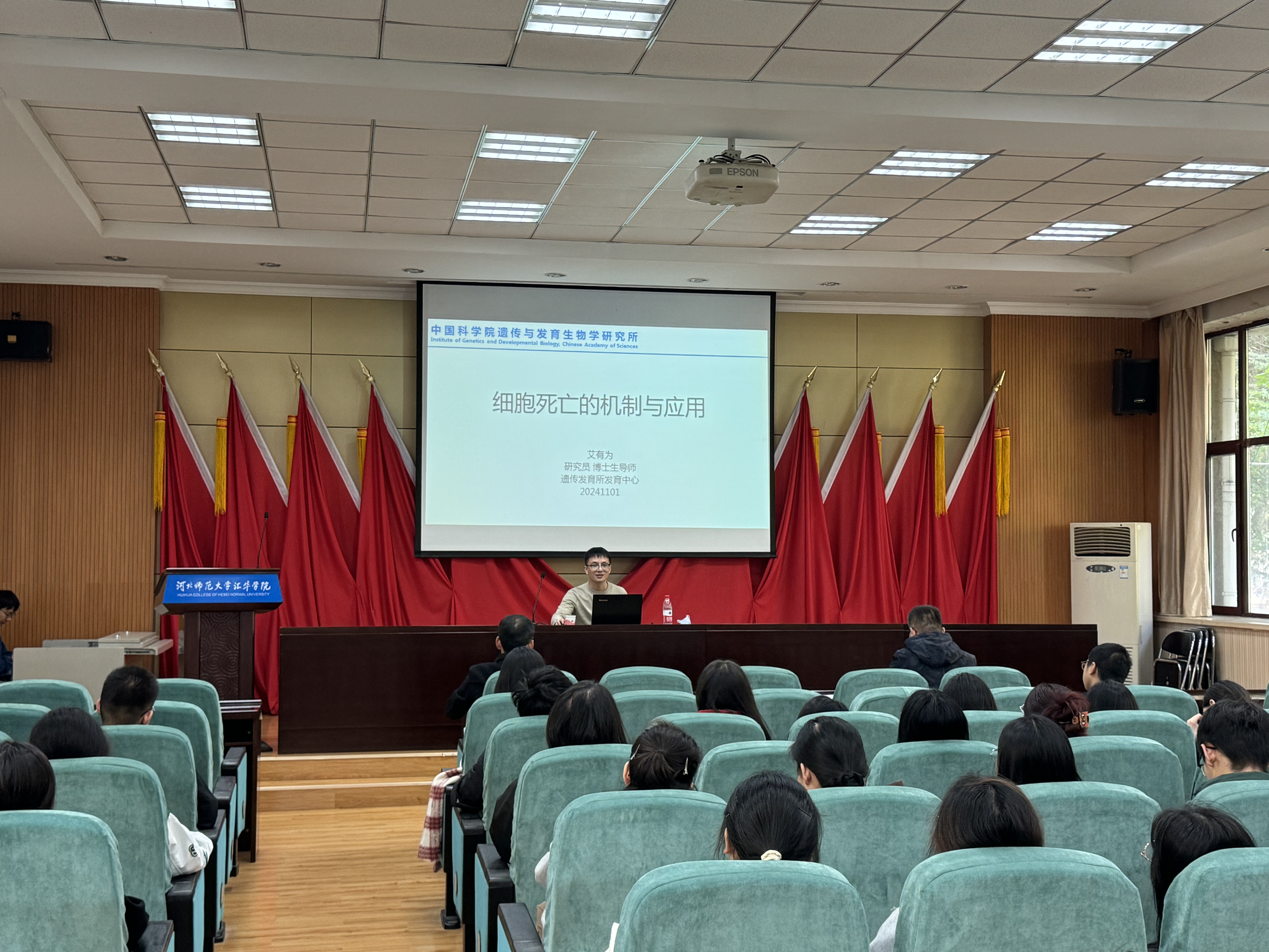 11月2日,中国科学院遗传与发育生物学研究所研究员、博士生导师艾有为,应邀做客beat365官网“汇华名家讲堂”,在图书馆一楼报告厅作题为“细胞死亡的机制与应用”的学术报告。理学部部长张增水主持讲座,理学部教学工作副部长、辅导员以及生物科学专业学生到场聆听。