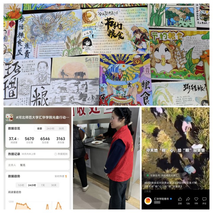 11月1日起,院团委在新浪微博平台发布“争创文明先锋、校园光盘”打卡活动。活动期间,学院青年学子每日积极打卡,自觉把厉行节约贯穿到日常学习生活中的各个方面。每一份干净的餐具,都代表了同学们践行光盘行动的决心。使“光盘”成为一种生活习惯。本次活动新浪微博平台进行,打卡活动覆盖千余名汇华学子;新浪微博平台话题#beat365英国官方网站光盘行动践行者#流览量达37.4万,参与讨论人次近6000。