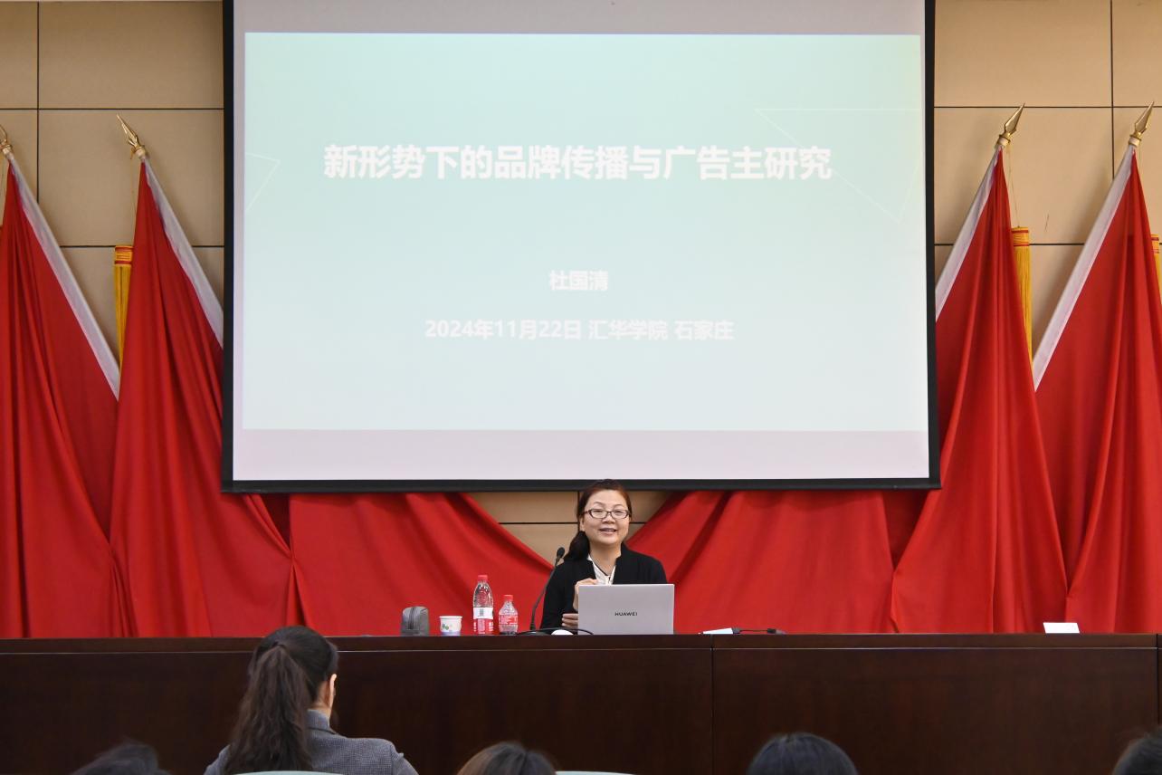 杜国清教授结合多年的广告行业研究经验,深刻剖析了新形势下品牌传播的现状,指出内容创新、渠道优化、受众互动在品牌塑造与传播中的战略核心地位。报告中,她围绕用户、渠道、内容三大核心要素,生动展现了广告主研究的实践成果,对广告主“媒体选择”与“策略制定”的前沿理论进行了分享。同时,她还就“个人品牌”创建进行深入阐述,强调捕捉用户情绪、深挖感性价值和培育稳固用户在品牌长期发展中的重要性。互动问答环节,在场师生踊跃提问,杜教授热情解答。她指出“为人的目的是为人”,鼓励大家勇于拥抱变革,深入探索品牌传播与广告主领域的新问题、新趋势,为中国广告行业的繁荣发展贡献自己的力量。