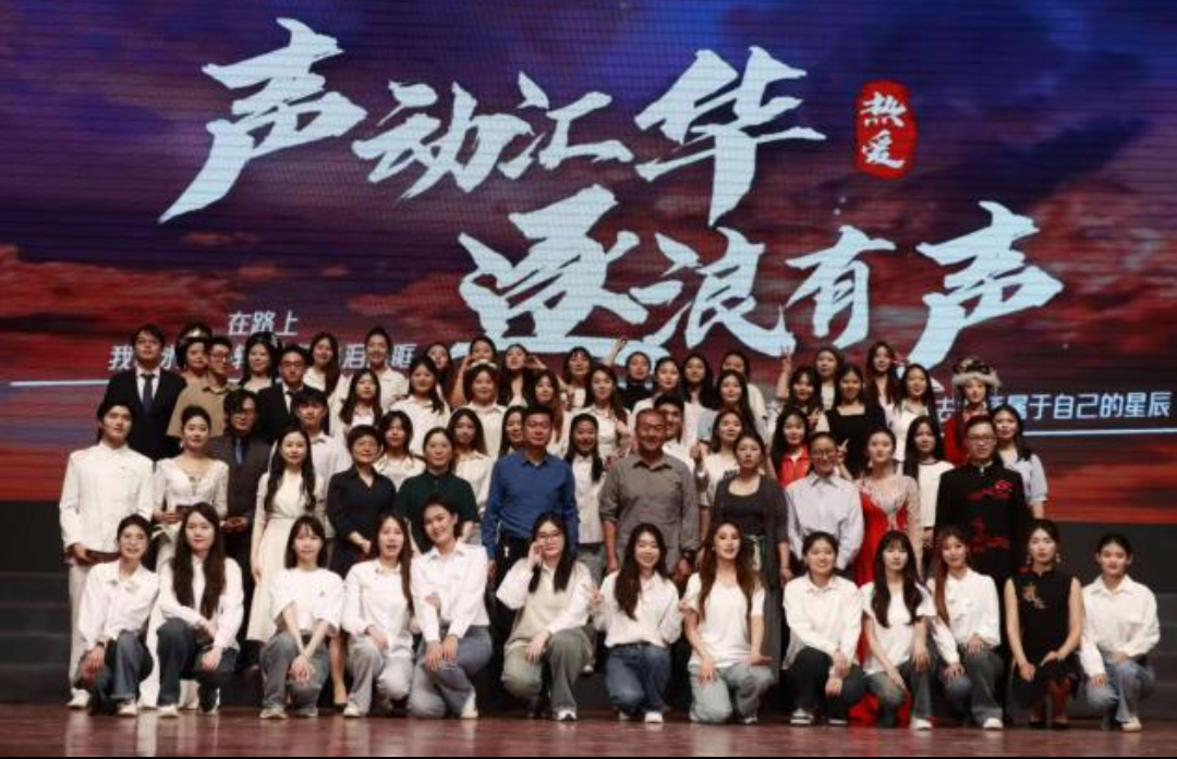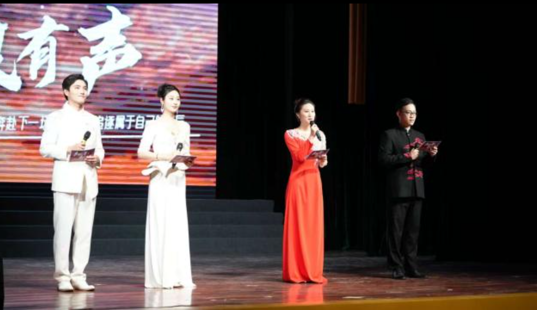 本次汇报演出精心设计了"声起·初探新声""声承·淬炼光华""声绽·华章致远"三大篇章,全方位展示了该专业学生的成长轨迹。开场片《声暖满帧》以独特的视听语言带领观众走进专业世界;舞蹈《奔跑的青春》则以活力四射的表演点燃全场热情。在第一篇章中,原创情景剧《天路》等作品展现了学生扎实的语言功底;第二篇章的原创朗诵《穿越时空 对话“她”力量》和原创配音《早八论文间 四年青春笺》等节目,充分体现了学生的创意与实践能力;第三篇章的新媒体节目《汇华说文旅直播间》更是将专业特色与新媒体技术完美融合,展现了与时俱进的办学理念。