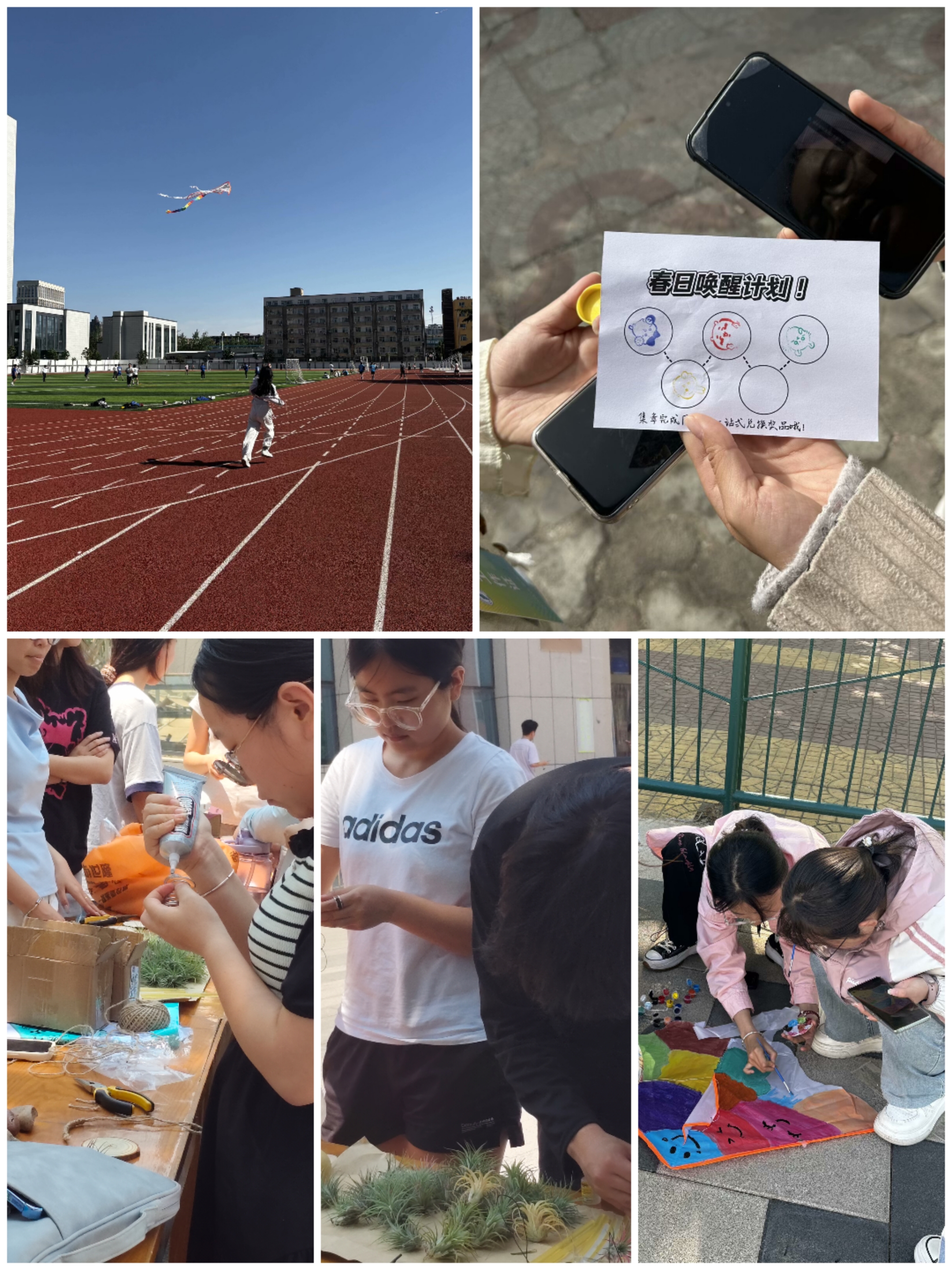 心协特色互动,融入日常点滴,践行心理保健。大学生心理发展协会作为朋辈力量,今春入驻一站式服务大厅,开展捏捏减压、黏土创作、曼陀罗绘画、自制书签等日常心理健康服务。活动月期间,更是推出多场主题活动,如4月25日的手绘风筝创意放飞,5月28日的知识互动与绿植创作,让同学们在趣味中舒缓压力,感受心灵治愈。