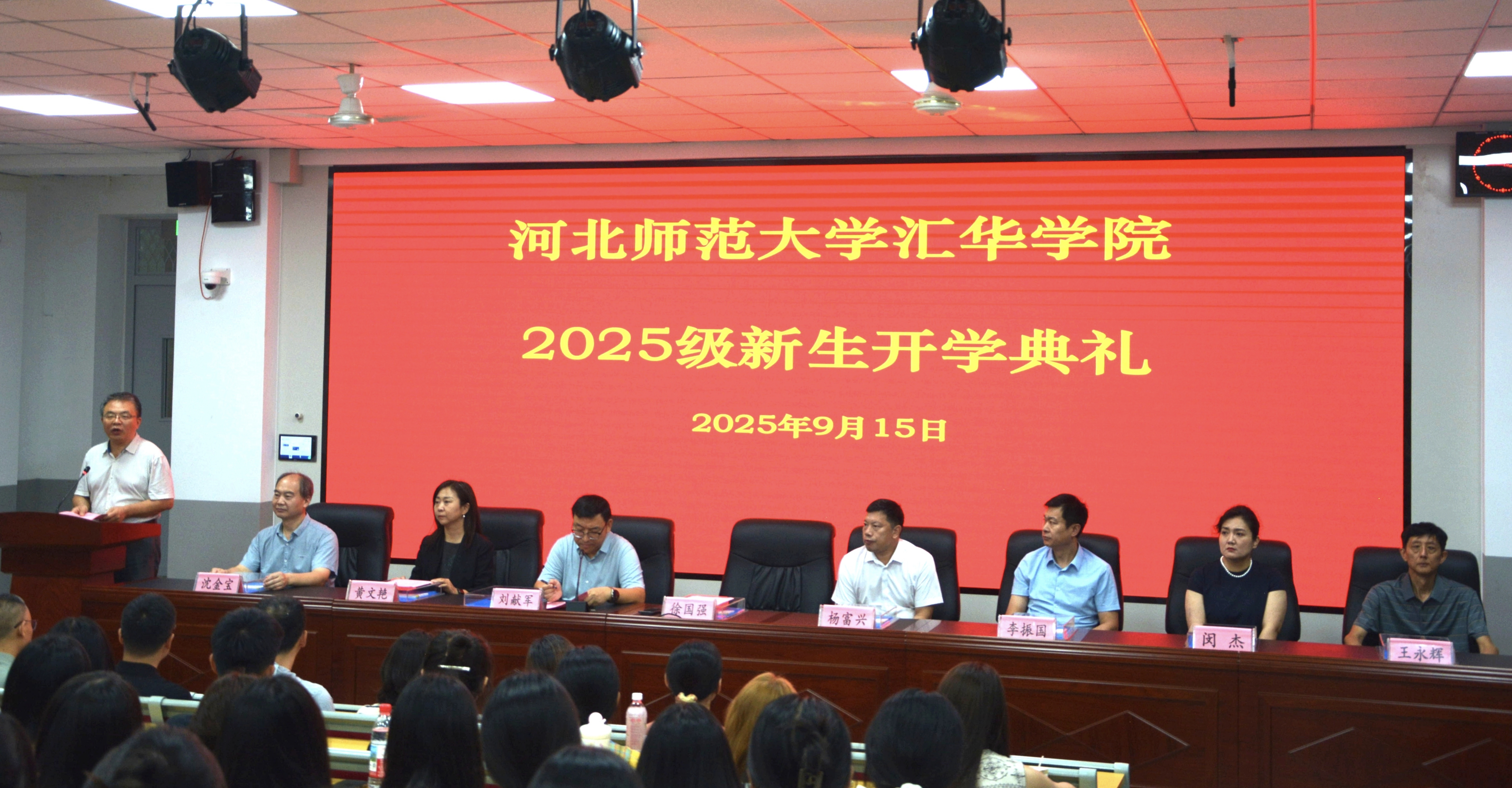 在开学典礼上,学院领导为新生代表颁发了校徽、学生证,2025级新生正式加入了汇华大家庭。