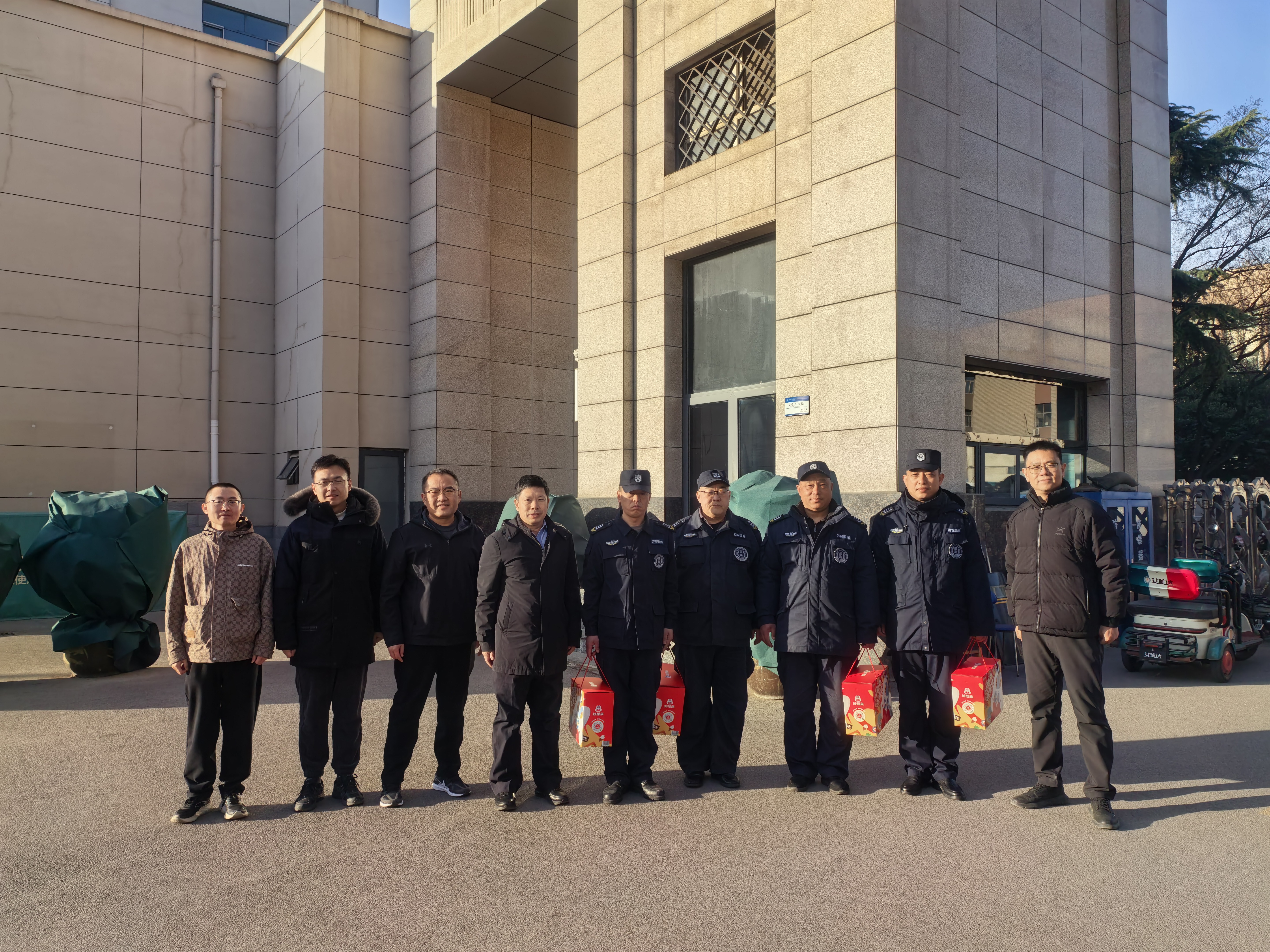 杨富兴一行走访了警卫室、行政楼值班室、物业公司、监控中心、消防控制室、汇华小学与附属幼儿园。杨富兴与教职工亲切交谈,代表学院送上祝福与慰问,并对大家一年来为学校发展付出的努力和取得成绩给予了高度肯定。