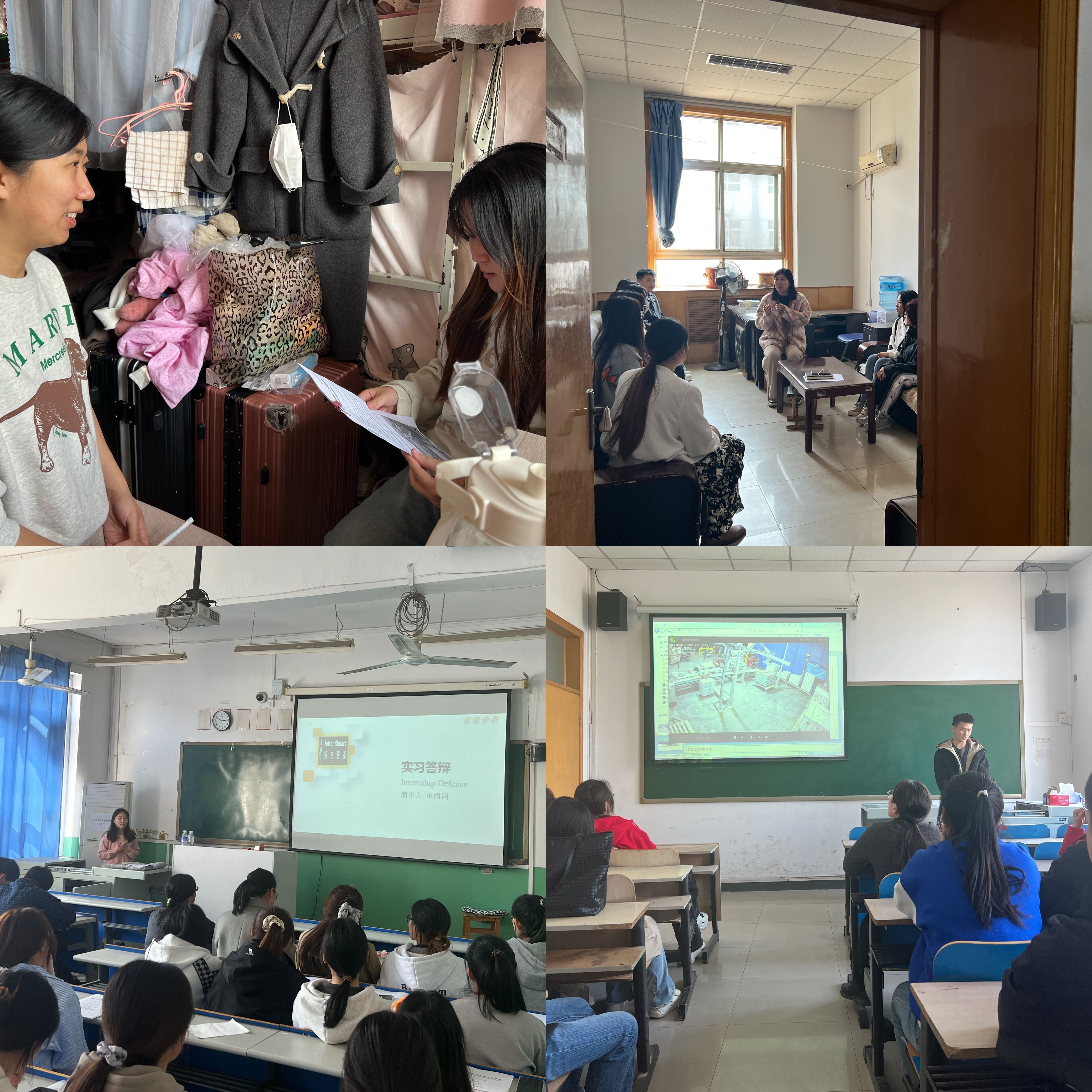 从2023届毕业生开始,引入毕业实习过程化考核制度,旨在引导学生们深刻认识生涯规划的重要性,并鼓励他们积极投身就业市场。通过开展毕业实习答辩,既能够让辅导员及时了解学生的最新动态,也能使同学们互相了解彼此的情况,形成比、学、赶、帮、超的氛围。