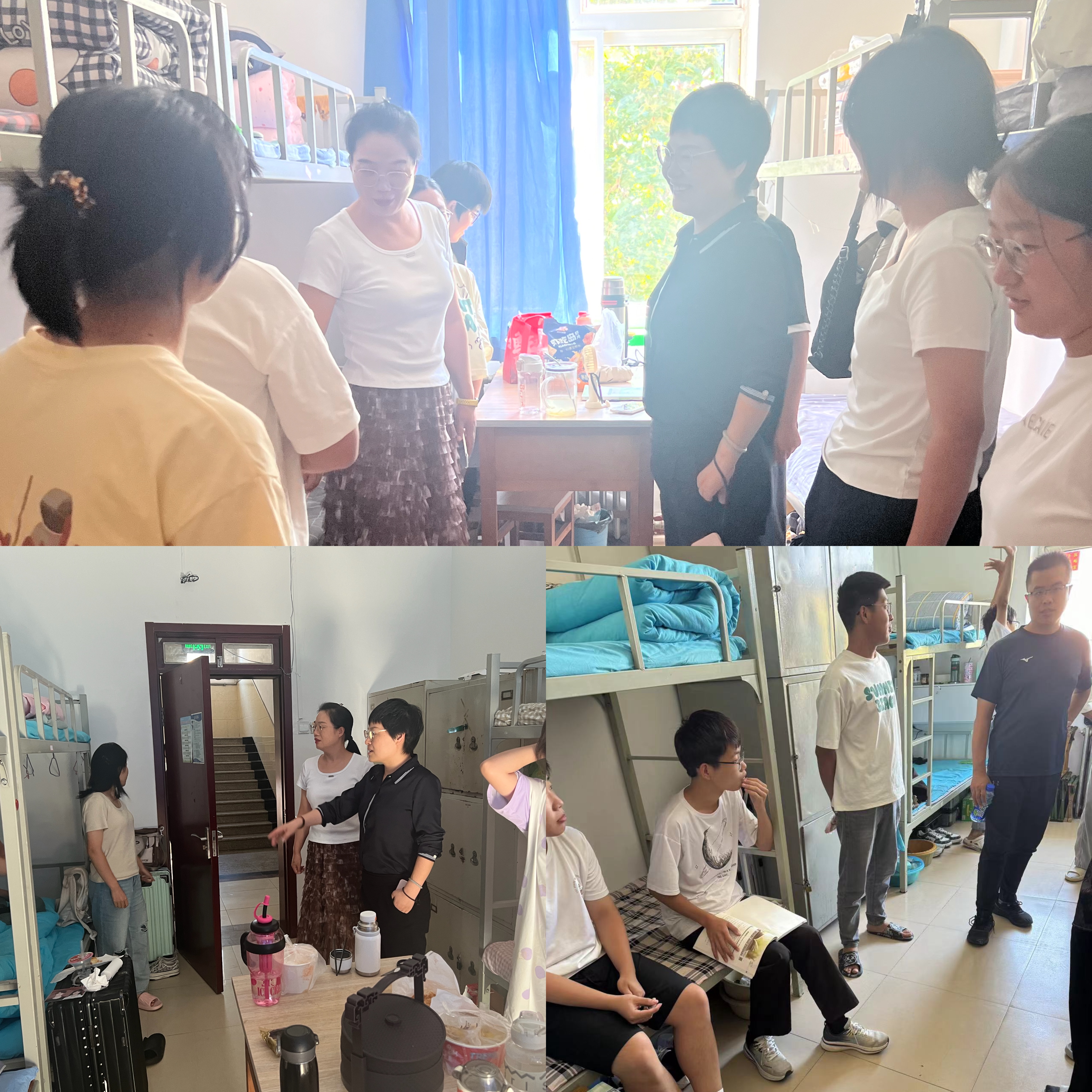 工学部部长段再超、学生工作副部长王玲平、教学工作副部长赵冠哲及辅导员们走进男、女公寓,与新生们逐一见面,了解他们的生活状态和学习适应情况。领导班子成员通过与新生的亲切对话,倾听他们的心声,分享大学生活的经验,帮助新生更好地融入这个全新的环境。在交谈中,领导班子除了表达对新生们的欢迎外,还寄予了希望。他们鼓励新生要树立远大志向,积极探索、勇于创新。段再超指出,大学是一个开放的知识殿堂,学生们应珍惜这四年宝贵的求学时光,勇于追求自己的梦想。
