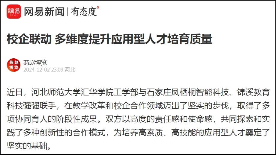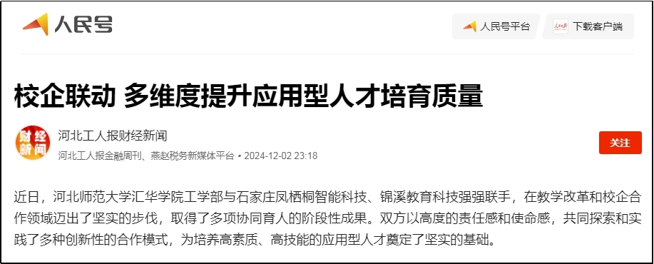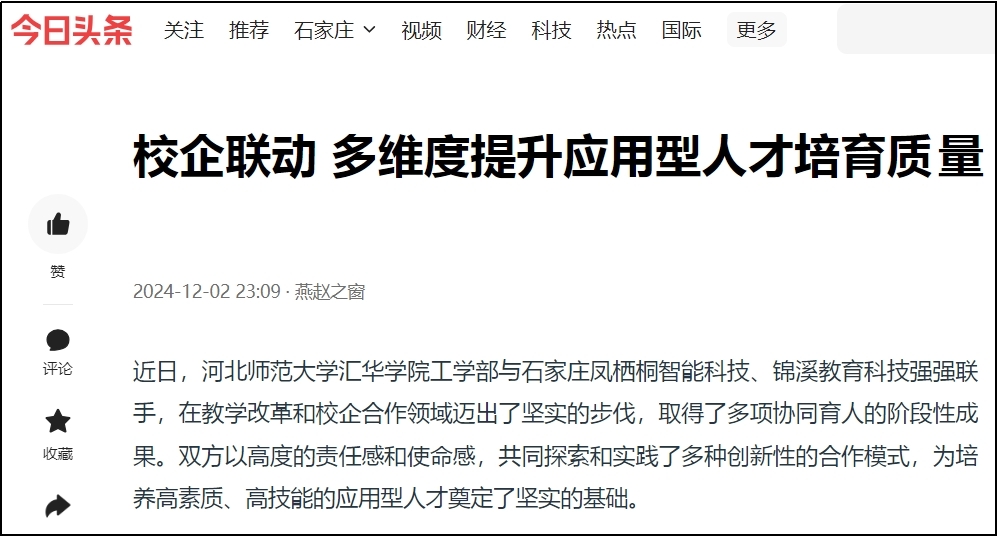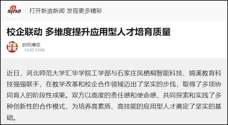 12月2日,今日头条、网易新闻、搜狐新闻、新浪新闻、燕赵时讯、燕赵财经、财经时讯、时代之窗、河北工人报财经新闻等多家媒体对beat365官网“校企联动 多维度提升应用型人才培育质量”的举措进行了报道。