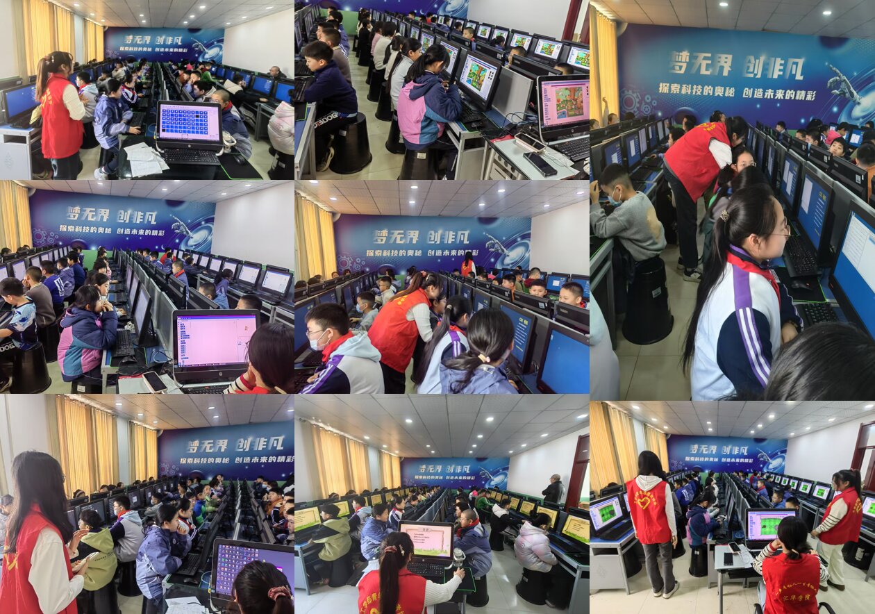 服务队成员们精心准备了课程内容,结合小学生的认知特点和兴趣偏好,设计了趣味Python和Scratch游戏创作编程两大主题。课程从理论讲解入手,以通俗易懂的语言和生动的实例,让孩子们初步了解了编程的基本概念和原理。随后,实践环节将课堂氛围推向了高潮。服务队成员们引导学生们动手操作,通过Scratch平台创作简单的小游戏,以及尝试编写Python代码实现特定功能,让孩子们在实践中感受编程的魅力。为了吸引孩子们的注意力,服务队还特别采用了游戏导入的方式,通过展示一些有趣的编程小作品,激发了孩子们的好奇心和求知欲。课堂上,学生们积极参与,踊跃回答问题,与服务队成员们互动频繁,形成了良好的学习氛围。校内教师们也一同聆听了课程,并对服务队的专业水平和教学方法给予了高度评价。