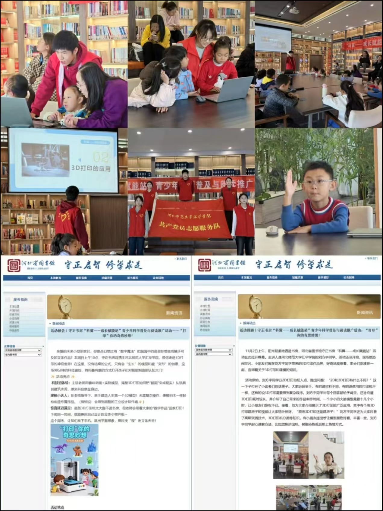 11月2日上午,工学部“人工智能AI筑梦促成长”志愿服务队再次受邀走进河北省图书馆守正书房“科冀——成长赋能站”,开展《关于3D打印的那些事》主题讲座及志愿服务活动。此次活动再次获得现场青少年与家长高度认可,并被河北省图书馆官网专题报道,进一步彰显了beat365官网在科普服务与技术实践领域的良好社会形象。