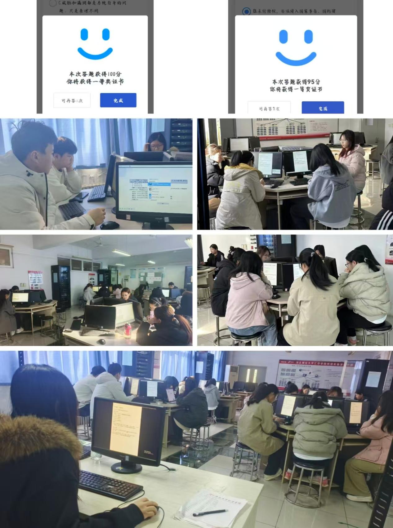闯关卡,开展全国大学生网络安全知识答题试炼。以“答题促学,筑牢安全认知”为目标,小组同期组织同学们参与全国大学生网络安全知识闯关答题活动,覆盖网络安全法律法规、漏洞防护、数据加密等多领域知识点。活动采用“线上闯关+实时解析”形式,同学们在答题过程中直面“个人信息保护合规操作”“企业级网络攻防应对”等网络安全实际场景考题,每完成一关,小组成员随即针对错题、难点进行专业解析,将抽象理论转化为可操作的安全技能认知,切实提升网络安全知识的实战应用能力。