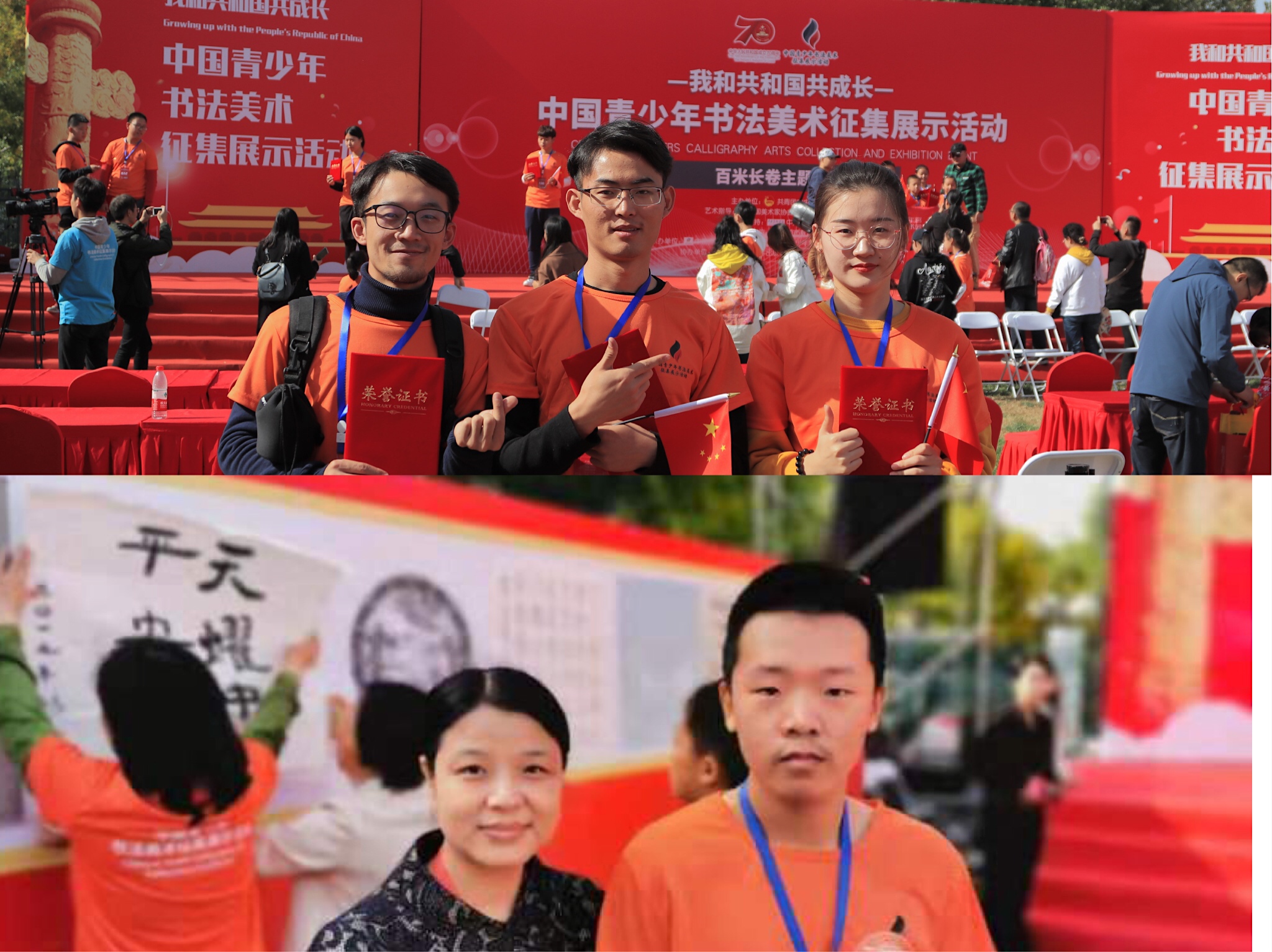 10月20日,“我和共和国共成长”中国青少年书法美术征集展示活动——百米长卷展示活动在北京青少年宫隆重举办。beat365英国官方网站艺术学部2016级美术学专业王羽莎、逯禹、刘春军,2017书法学专业谢梓杉4名学生受邀前往北京,与来自全国的140名画家进行现场创作,通过作品表达爱国情感。