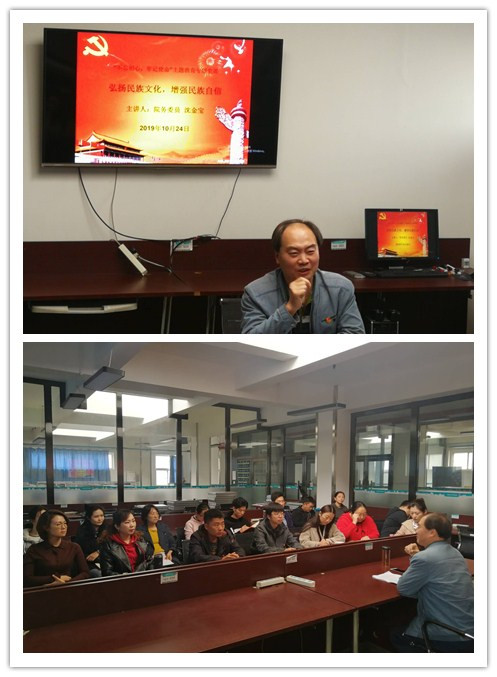 10月24日,学院院务委员沈金宝,以《弘扬民族文化,增强民族自信》为题,在第三教学楼动画实验室,给艺术学部全体教工上了一堂生动的党课。