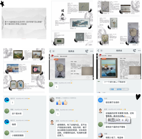 疫情爆发以来,艺术学部积极响应学院“停课不停教,停课不停学”号召,引导学生自律、自护、自修。此次拍卖会的举办巩固了学生的专业思想,拓展了他们的职业视野,是第十六届校园文化艺术节的一个篇章。