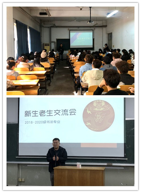 10月23日,艺术学部动画、书法学专业分别在第三教学楼103、110教室举办在校新老生交流会,动画专业王亚全老师、书法学专业王彦杰老师以及辅导员李娜老师参加了此次活动。