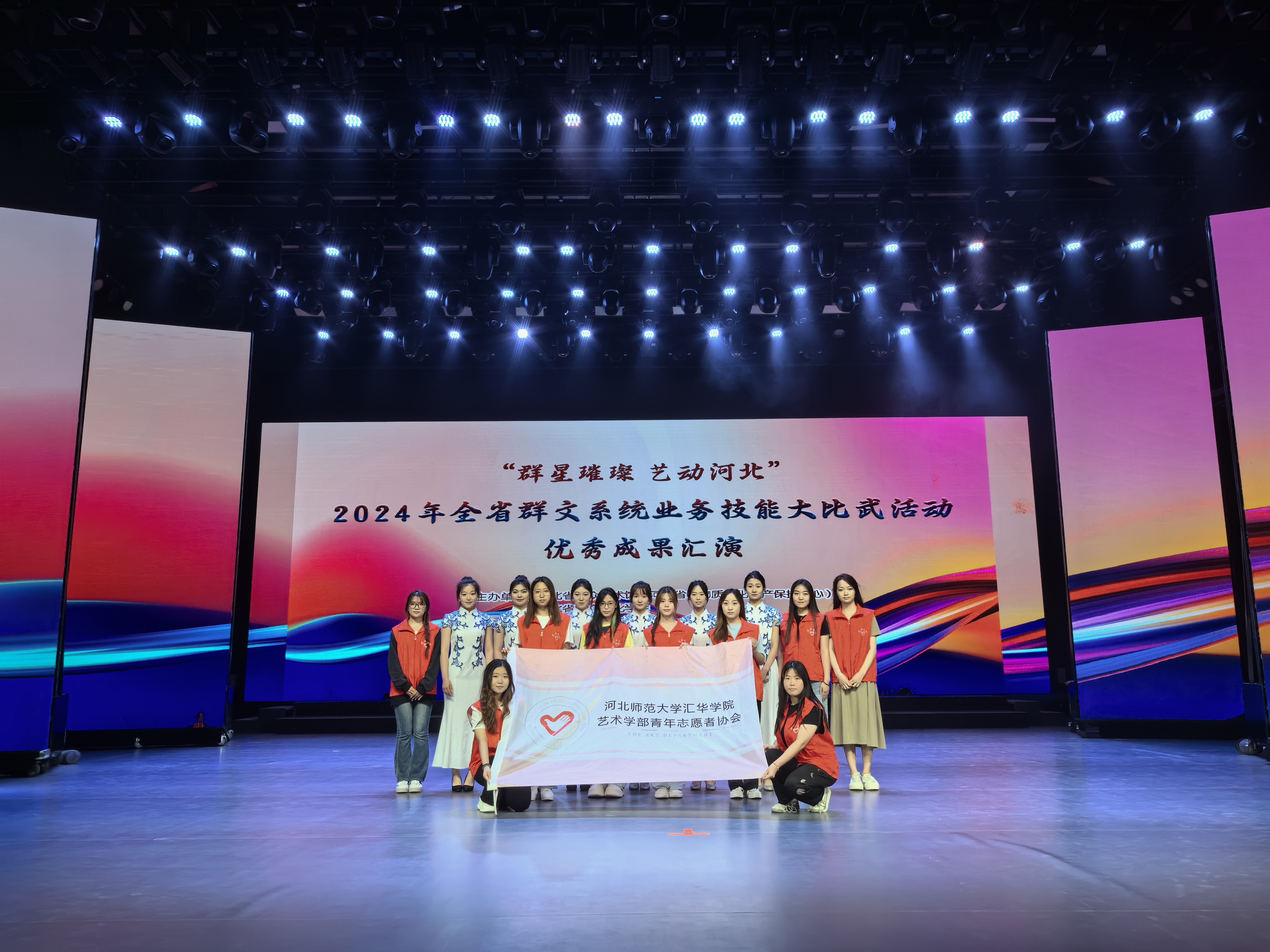 5月26日,由河北省群众艺术馆主办的2024年全省群文系统业务技能大比武活动优秀成果汇演在虹光剧场进行。beat365官网艺术学部选派了6名礼仪与9名志愿者为此次展览会助力添彩。
