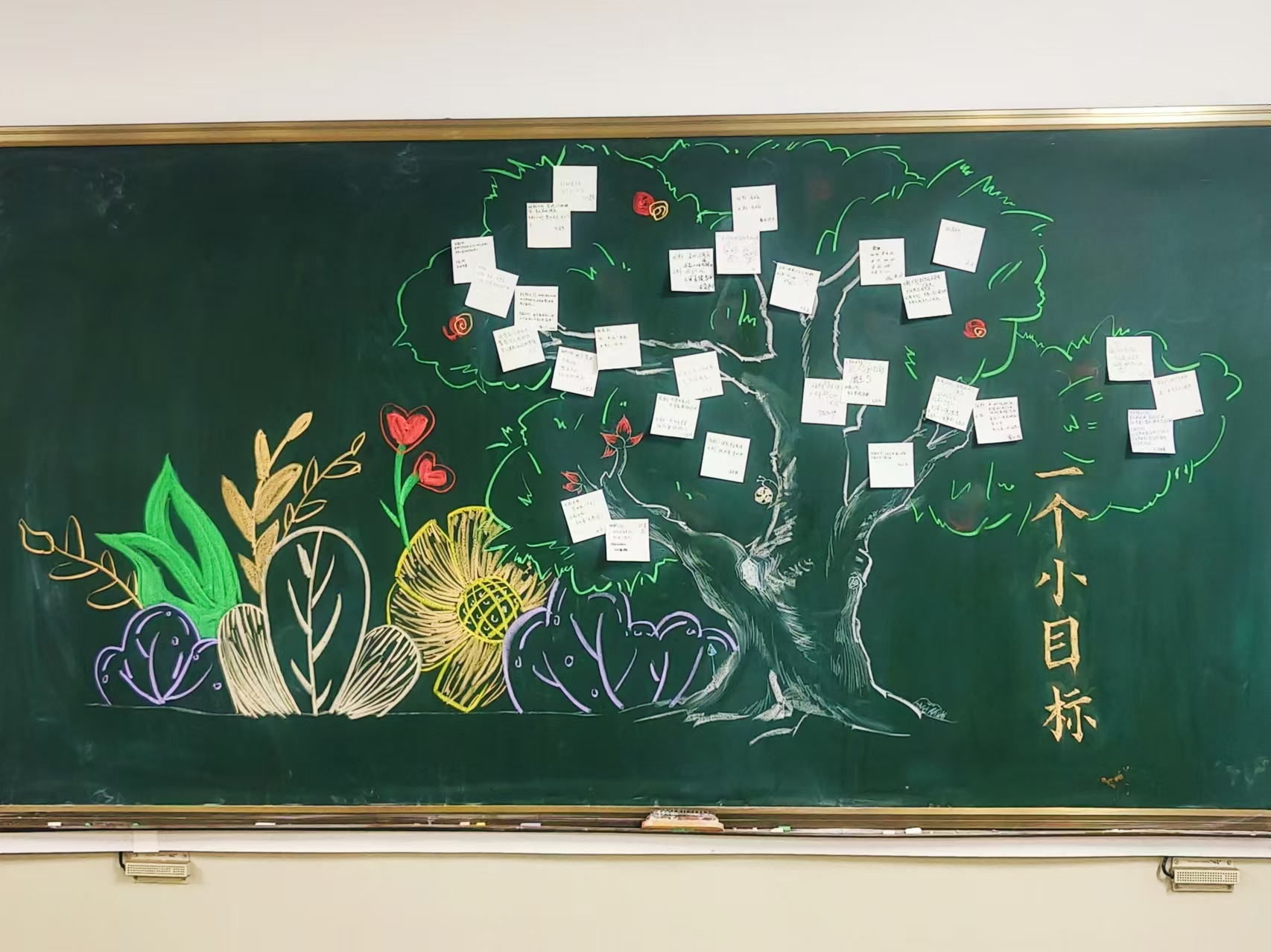 在热烈的氛围中,同学们相互分享着各自的目标与期望,整个班级洋溢着积极向上的气息,很快一棵茁壮成长的大树在黑板上呈现,寓意着同学们对目标实现的坚定信念与不懈追求。在大家的共同努力下,“目标墙”最终圆满完成,成为班级一道亮丽的风景线。辅导员老师强调班风建设的长期性与持续性,提出了具体的监督与激励机制,如加强早晚自习与课堂纪律的监管,发挥优秀学生的榜样作用,以及定期举行班会分享学习心得与目标进度等方面共同推动班级良好风气的建设。