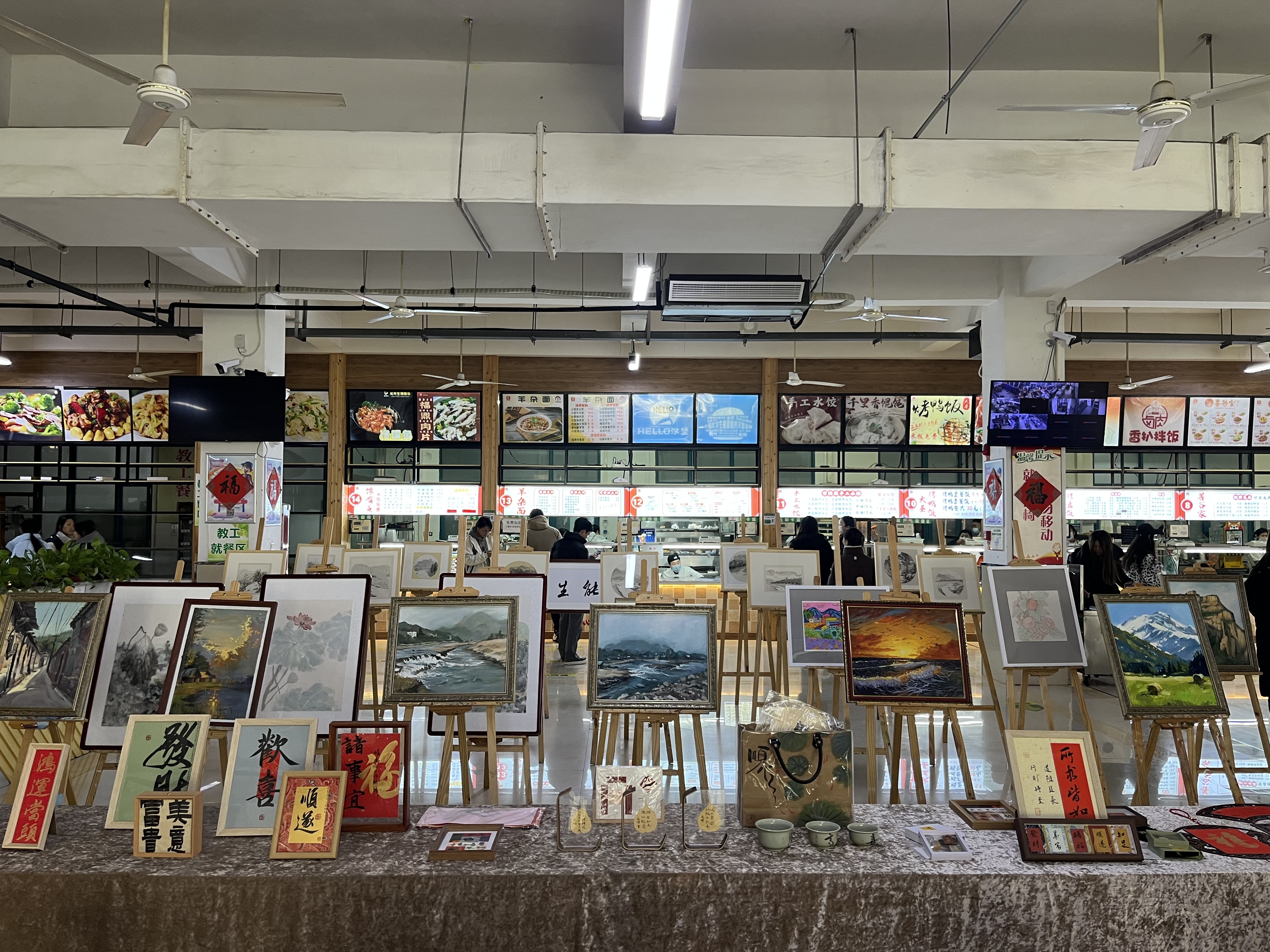 12月27日,艺术学部第六届“迎新春”拍卖会在校食堂二楼顺利举行。活动历时2个小时,最终成交29件作品,成交率为74.36%