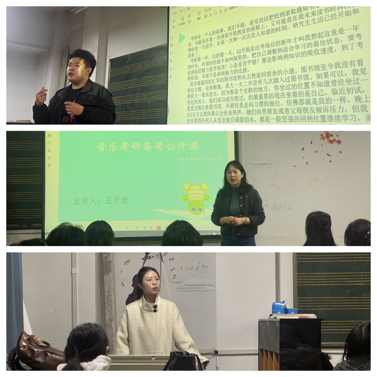 3月27日下午,艺术学部第一党支部邀请河北师大优秀研究生在第三教学楼301教室开展了精彩的考研分享会。2022级音乐学和舞蹈学共计约七十余人现场聆听。