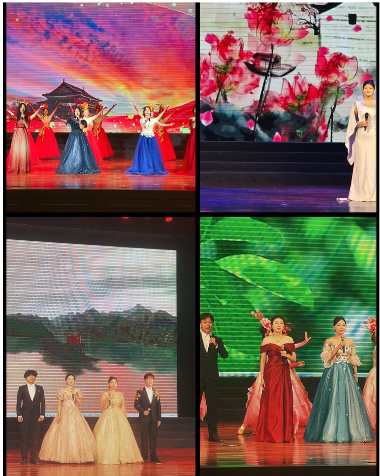 演出曲目风格多样,涵盖了民族、流行等多种元素。卢佳硕的《海恋》,以深情的演绎,唱出了对大海的眷恋;范雅惠琪的《枫叶之歌》,用歌声描绘出枫叶的绚烂与凄美;孟钰的《曙色》,大气磅礴,展现出破晓的希望与力量。二重唱《光亮》在谭炳楠和赵艺博的默契配合下,歌声交织出独特的艺术魅力。